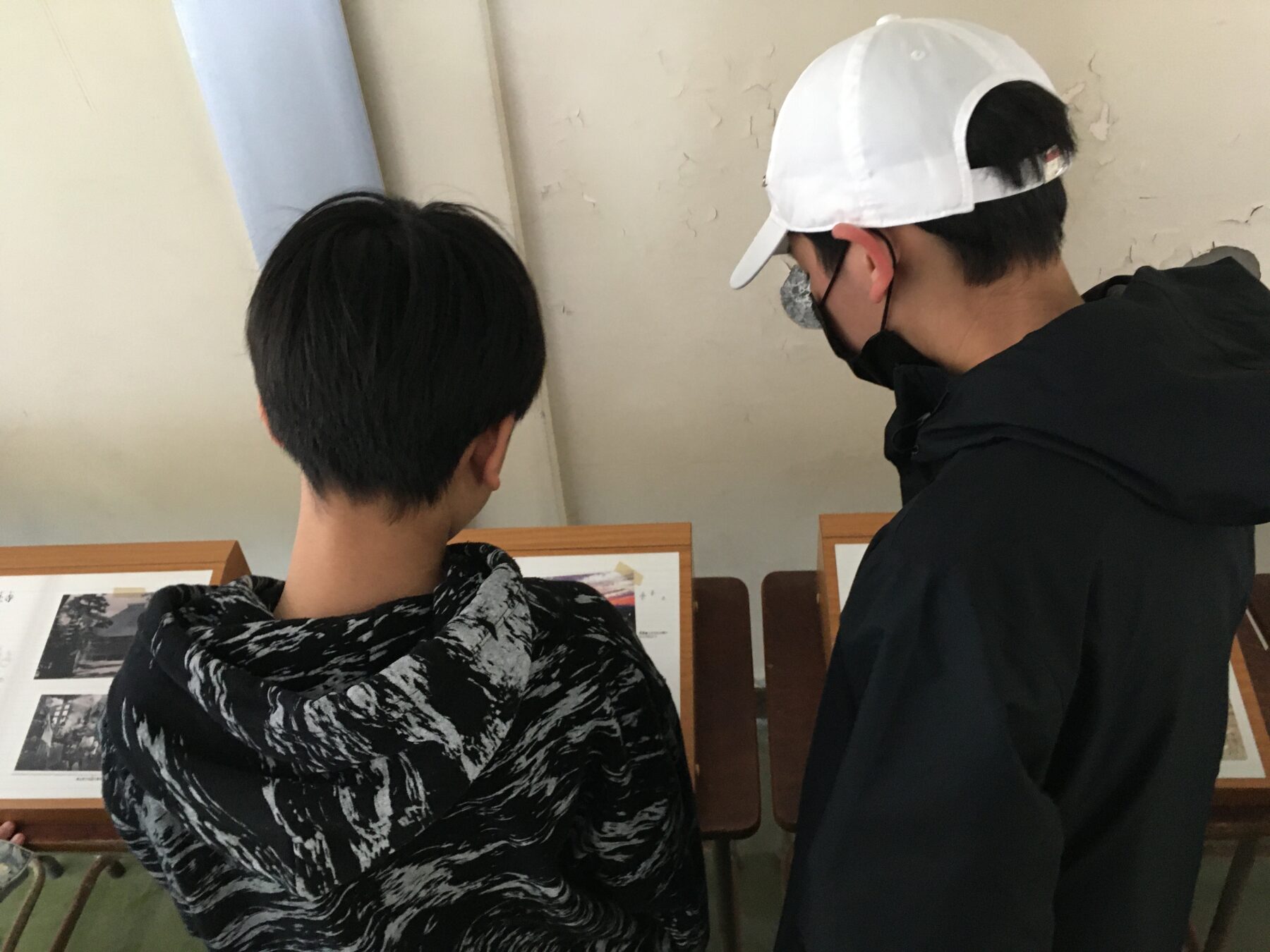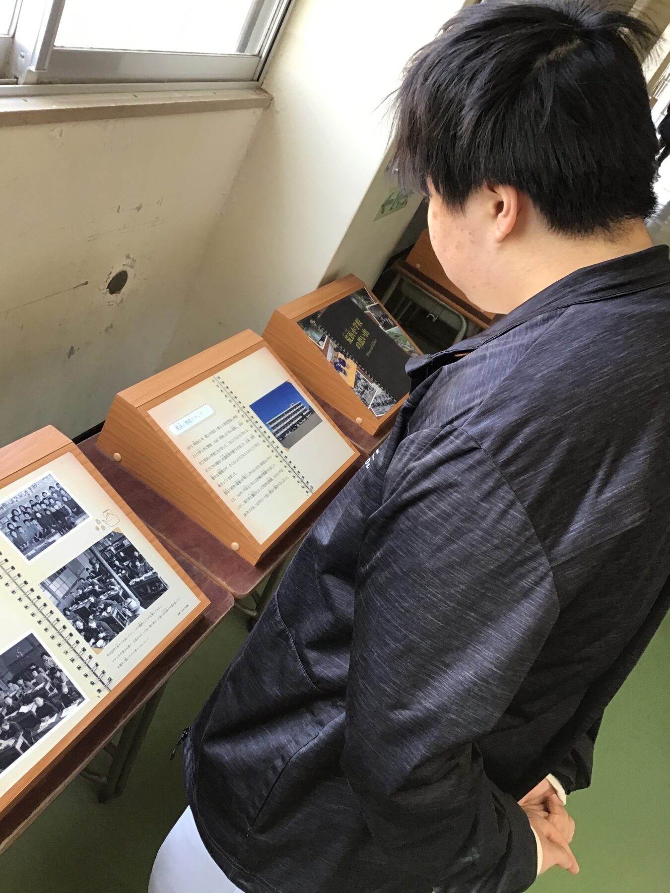 校舎内の写真や映像、当時の記録を通して、