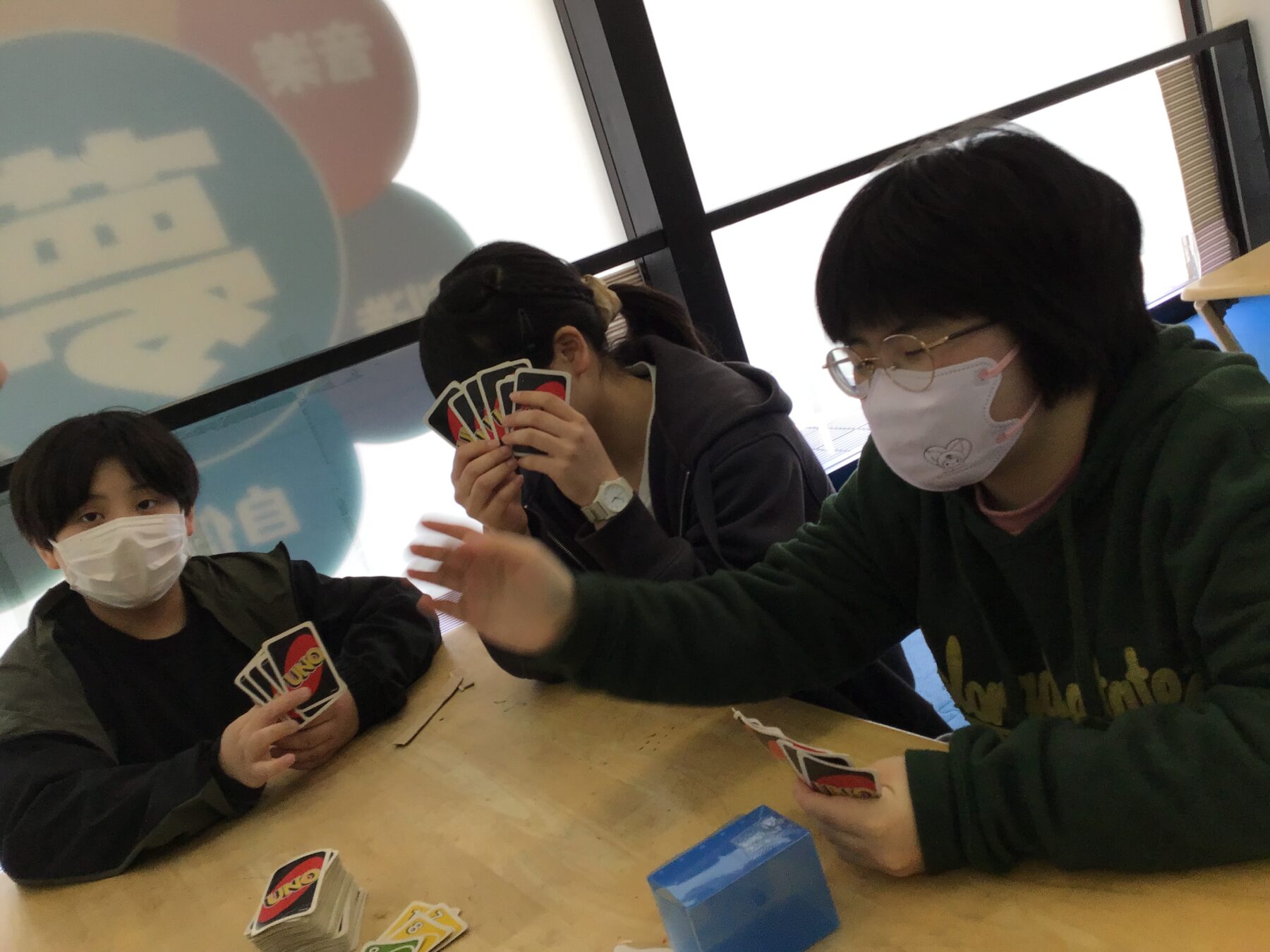 カードゲームに夢中になるお友だち、お友達同士でおもちゃで遊んだりと、