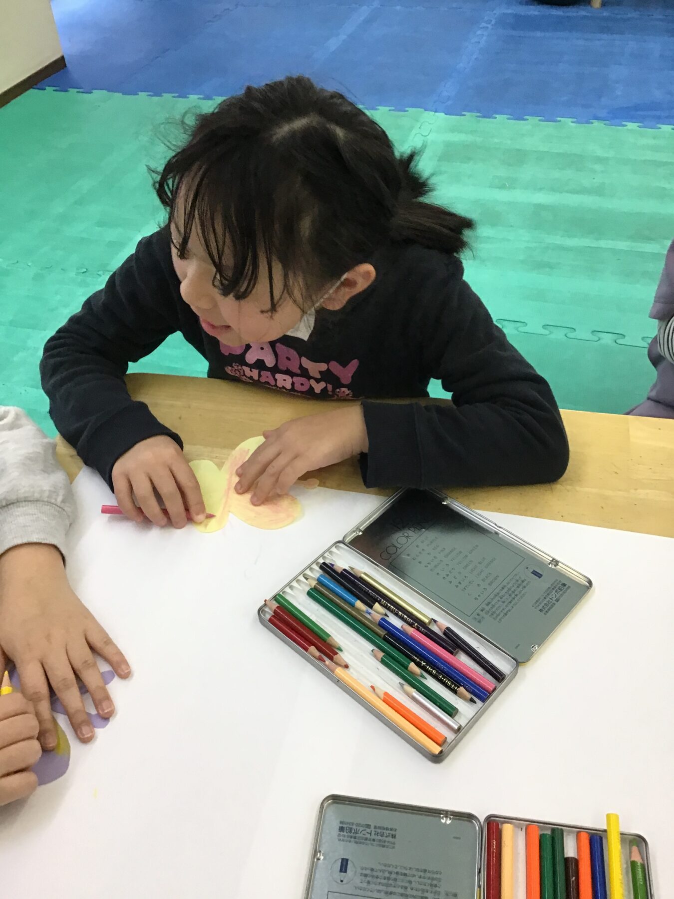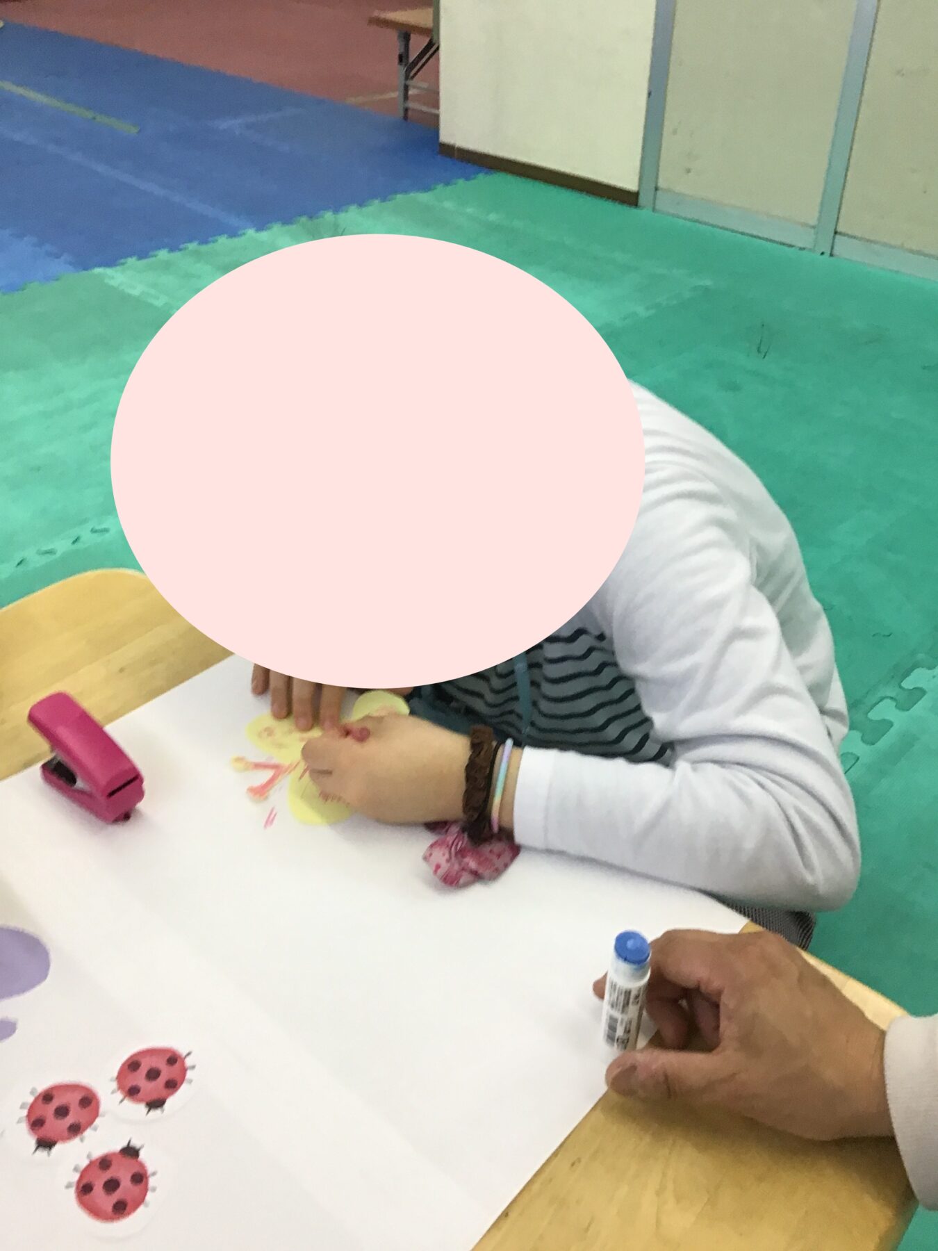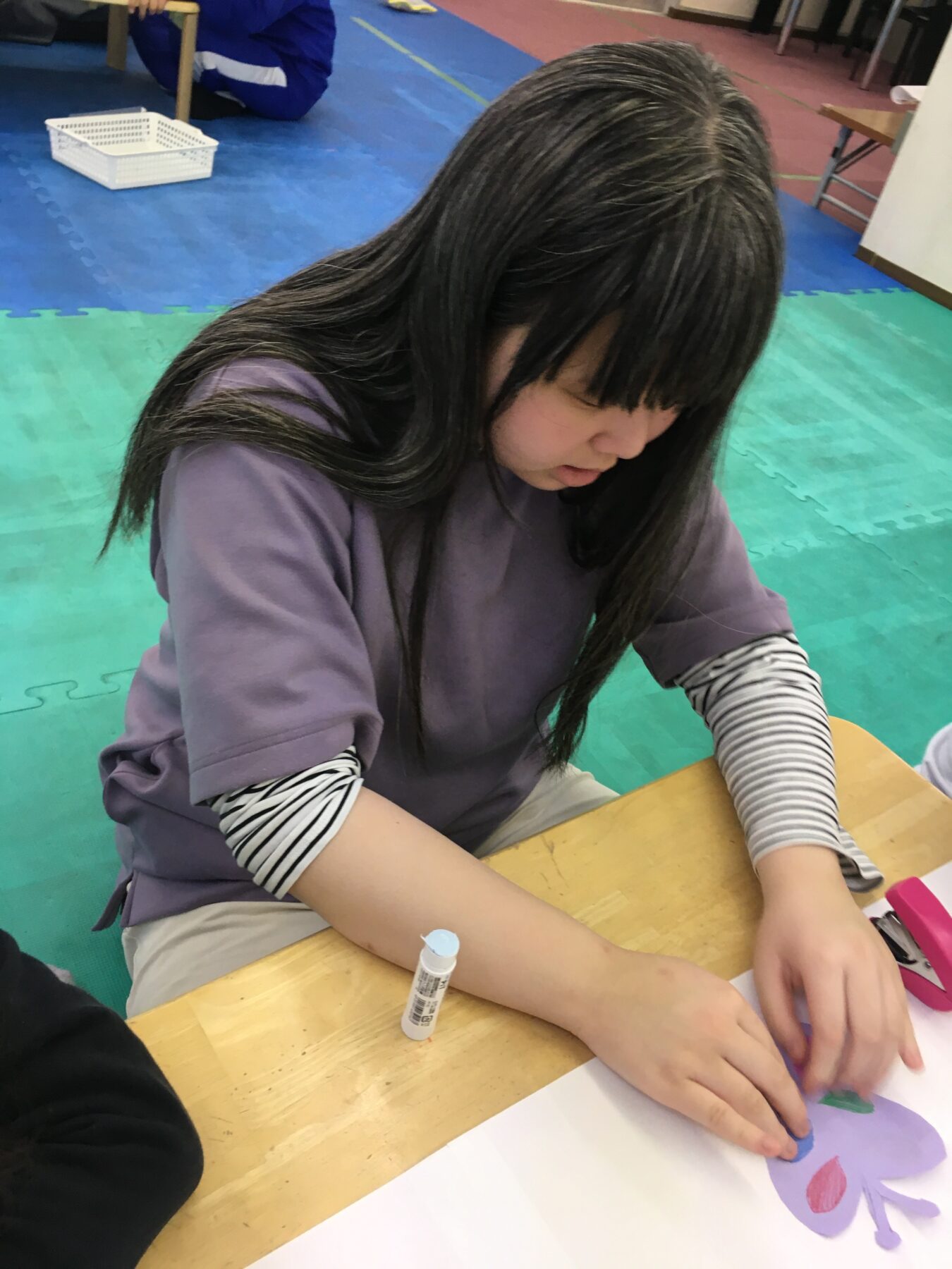 お花や、草むらなどを製作していきます。のりを使う時は、お友だちと声を掛け合いながら使いましたよ(*´ω`*)