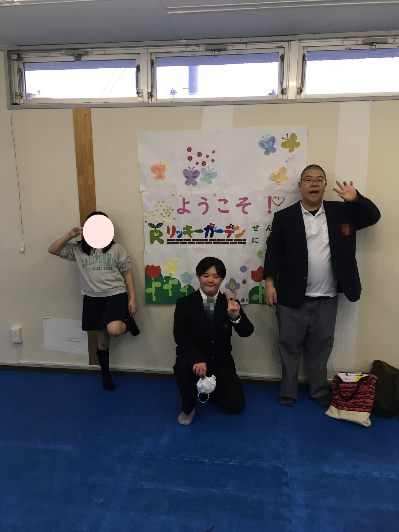 「空チーム」は、みんなでちょうちょに模様をかいたり、歓迎の文字をおしゃれに飾ってくださいました。