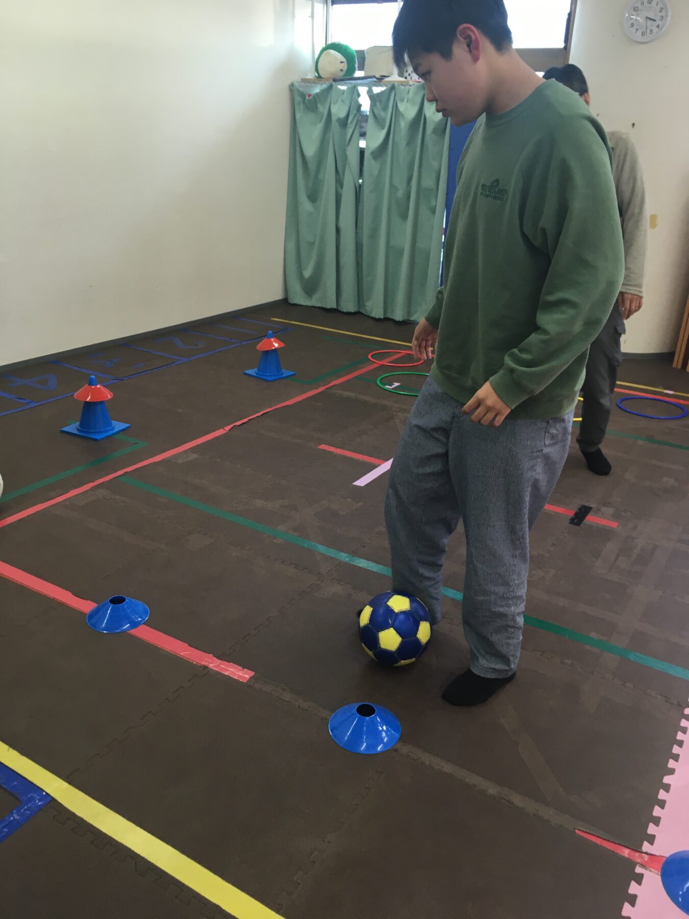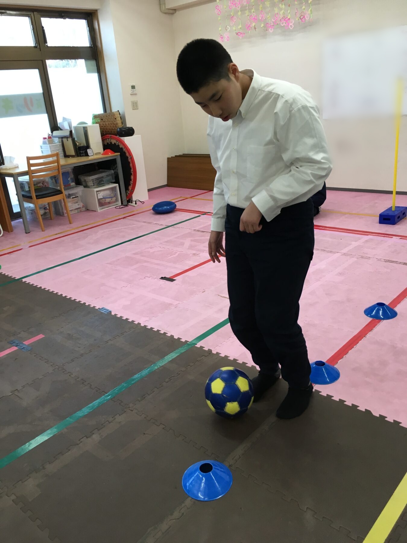 しっかり休憩をはさんで、【体幹・サッカーボール運動】をおこないました⚽