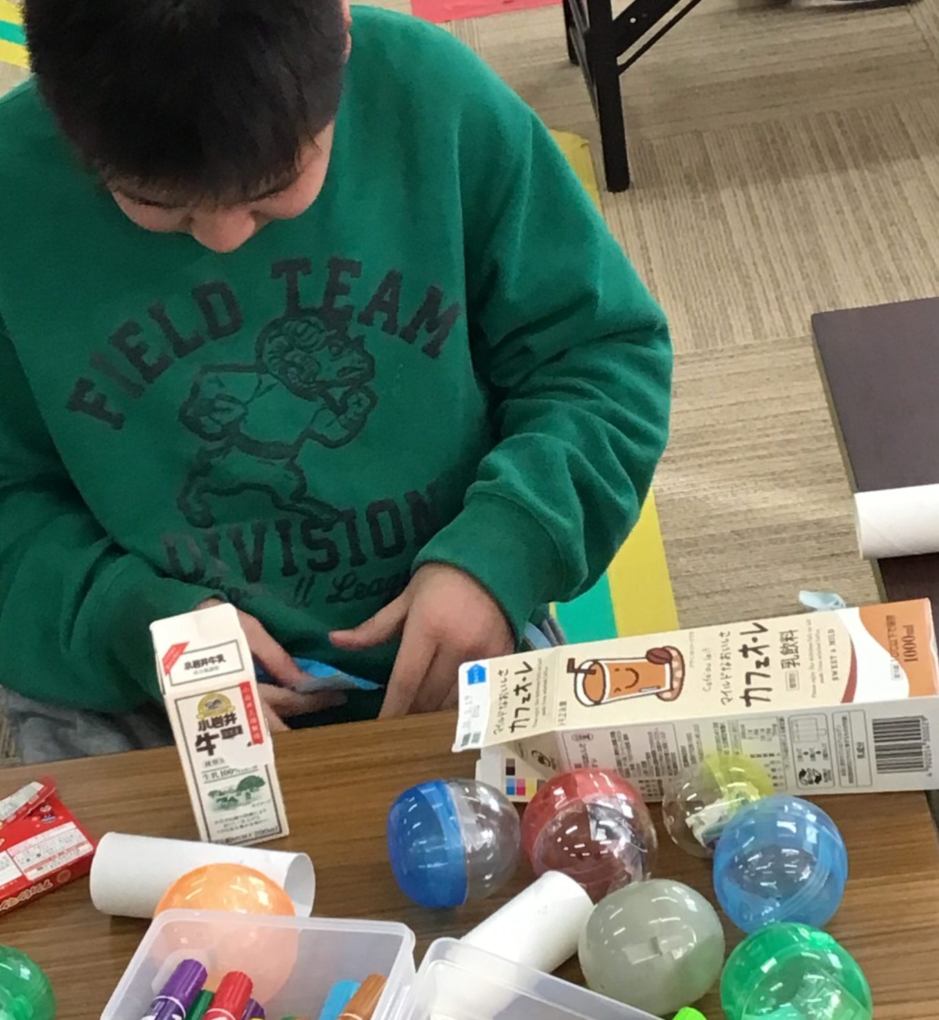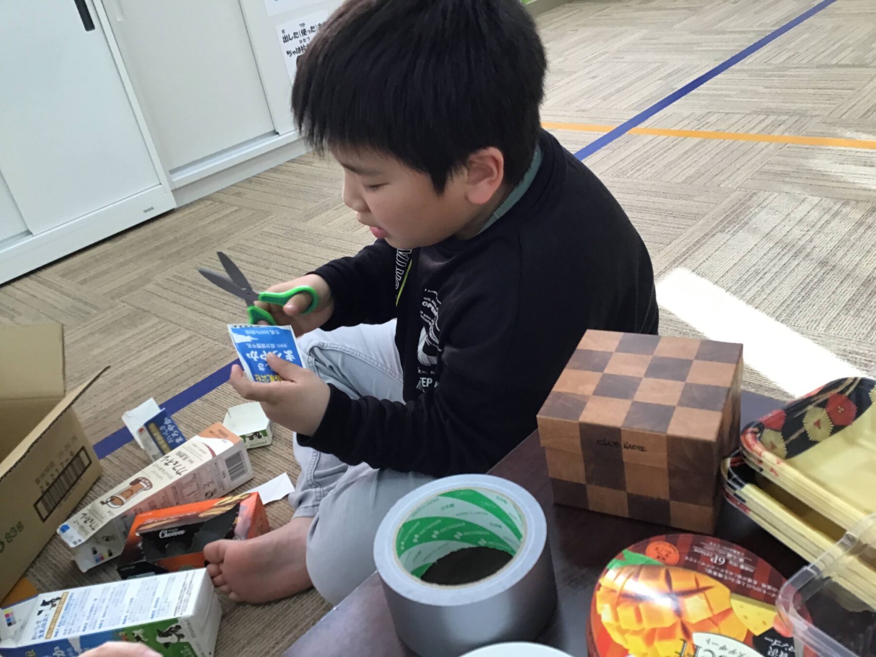 本日の活動は【運動・感覚:廃材遊び】を行いました。