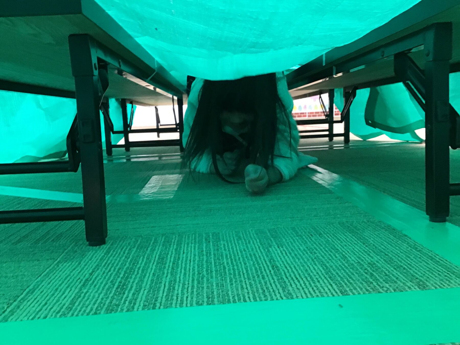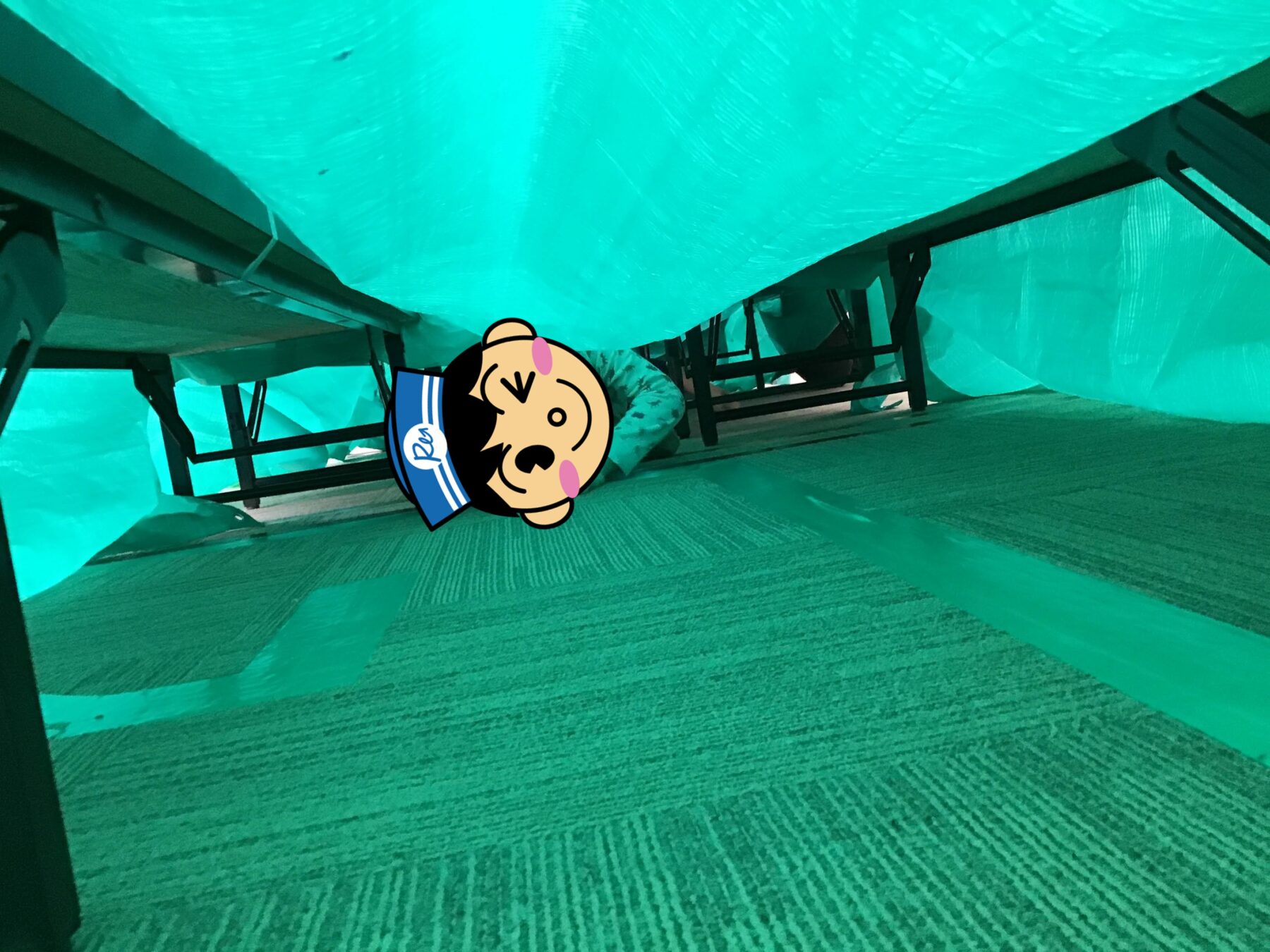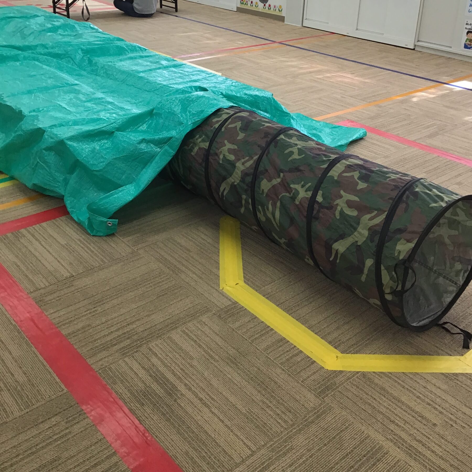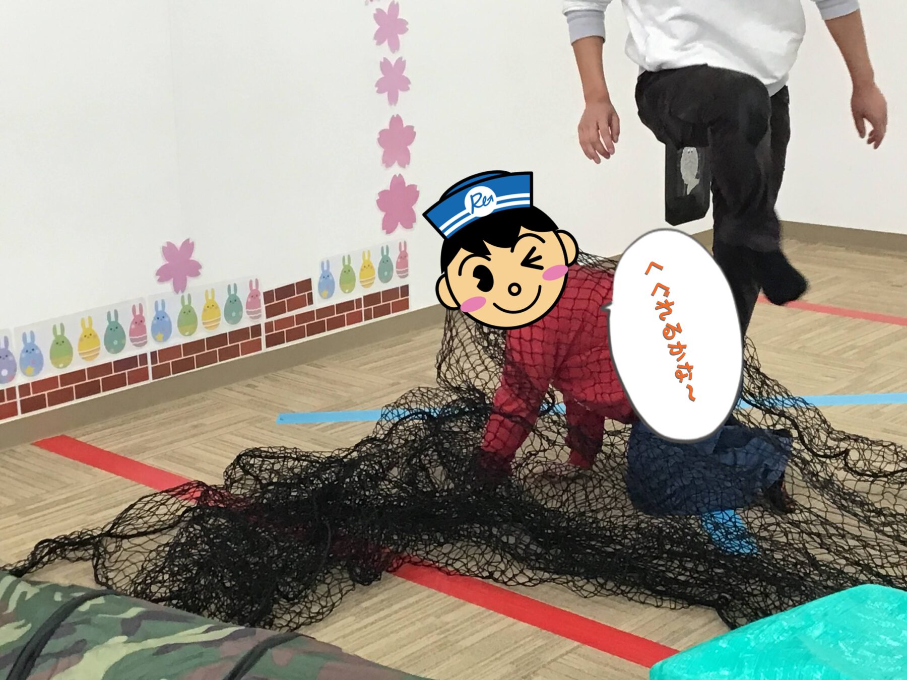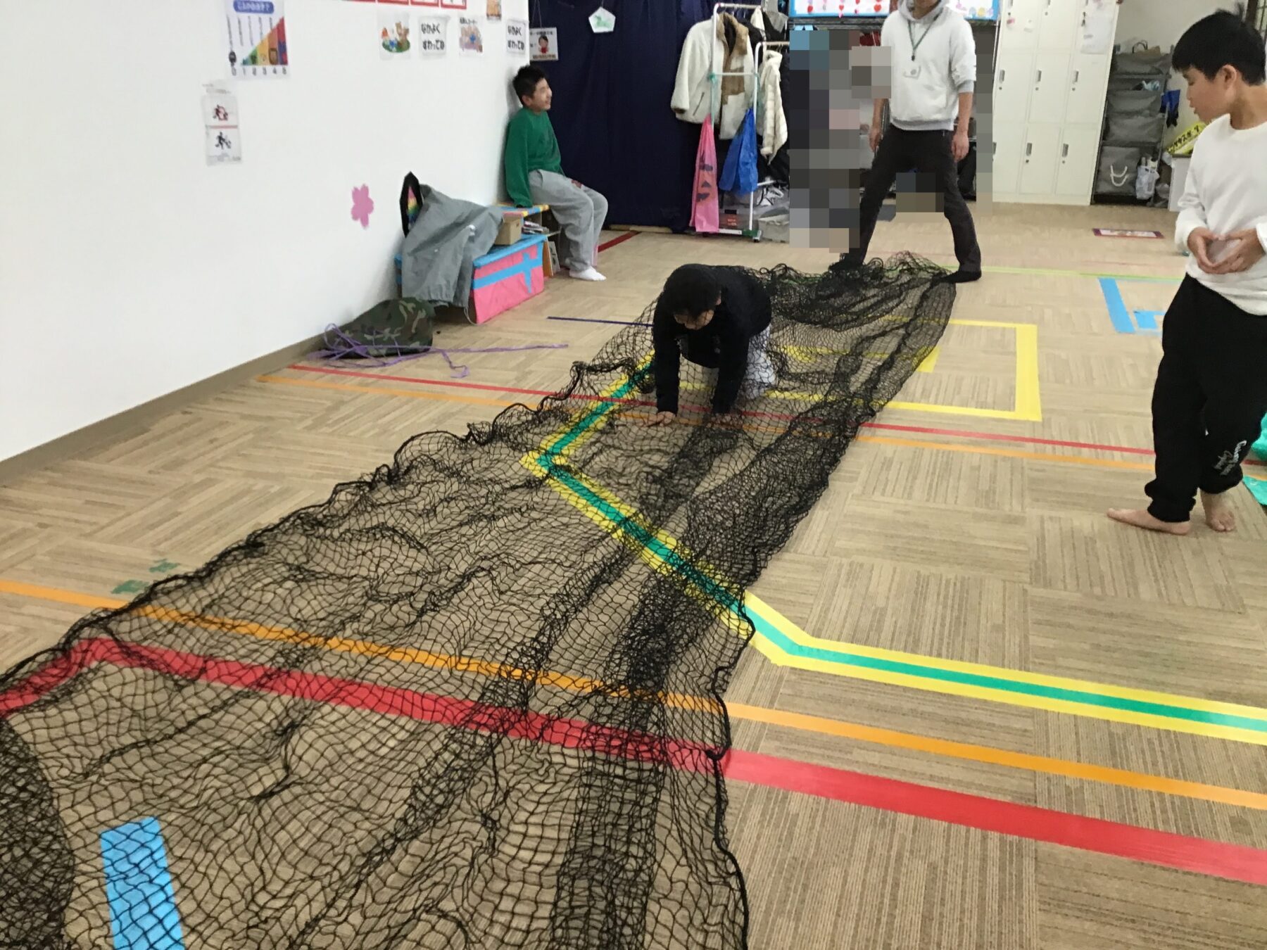 ネットをくぐったり、シートのトンネルをくぐったりして遊びました。