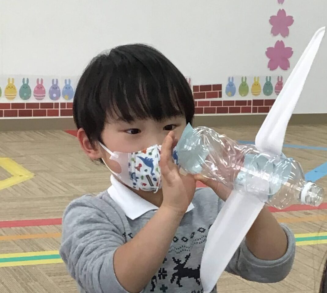 廃材遊びで作ったひこうき🛫を一緒に飛ばして遊んでおりました。