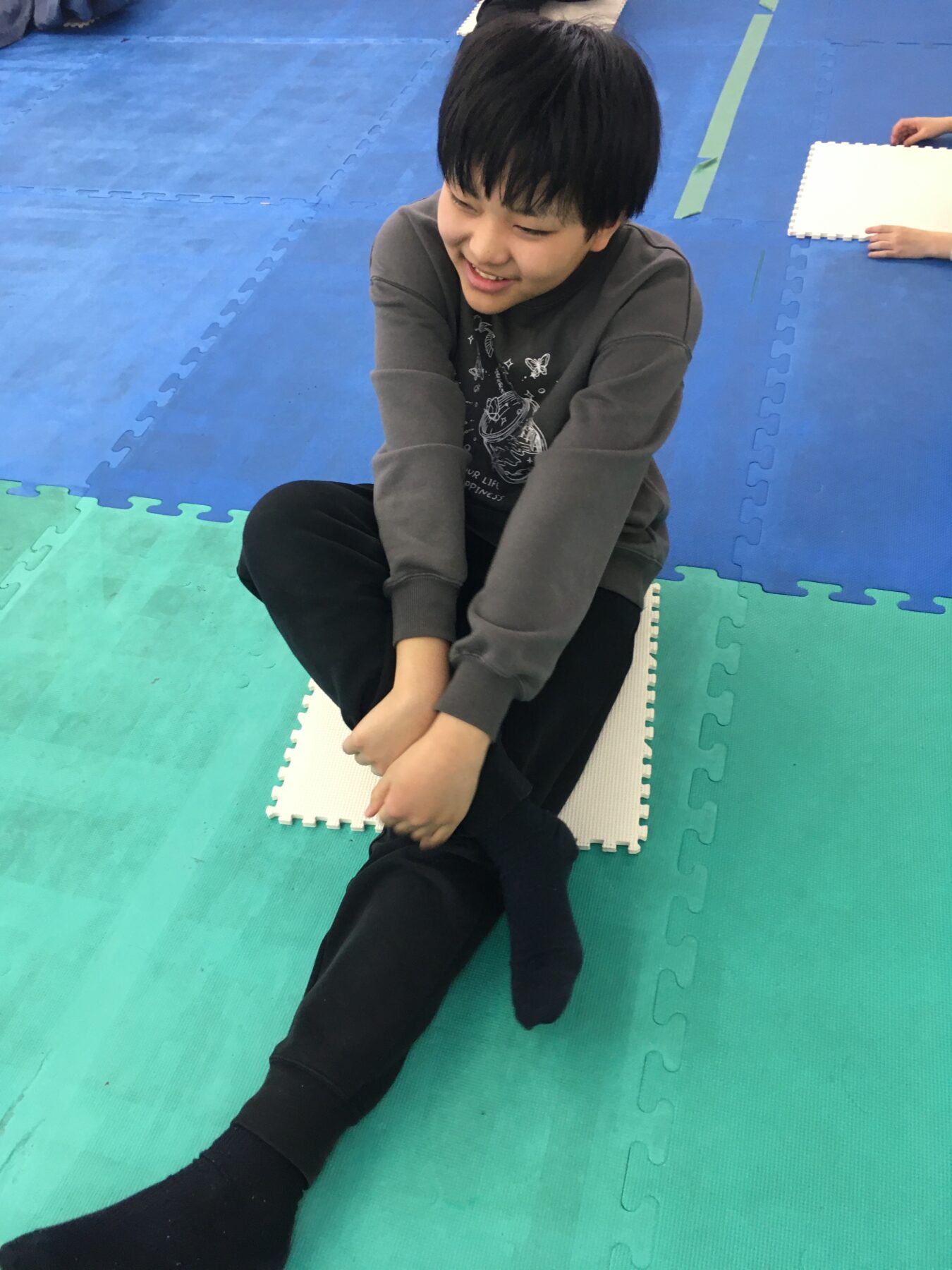 ストレッチをして体を動かす活動も行いました。