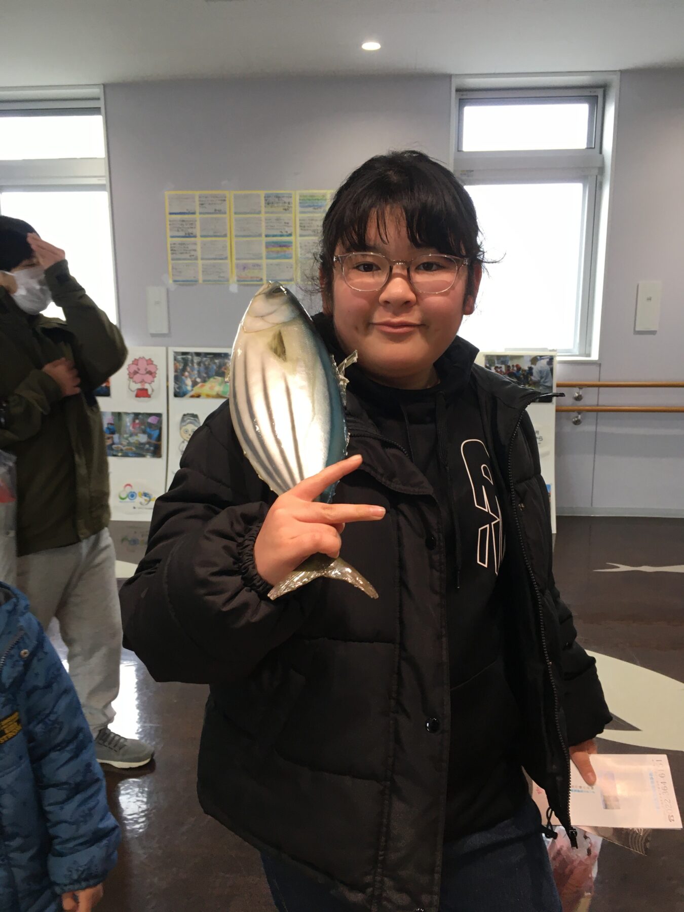 マグロの重さを体験するコーナーでは、30~90キロのマグロを引っ張ることができました。