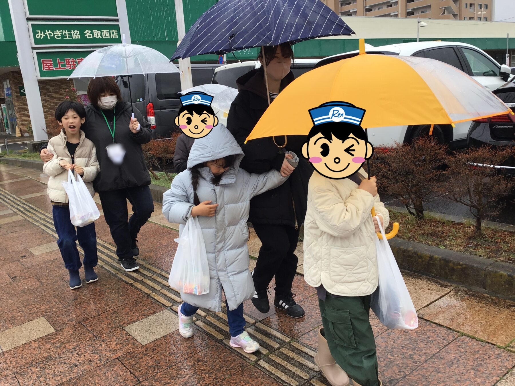雨の中でしたが傘などをさして歩いてお買いものにレッツゴー!!