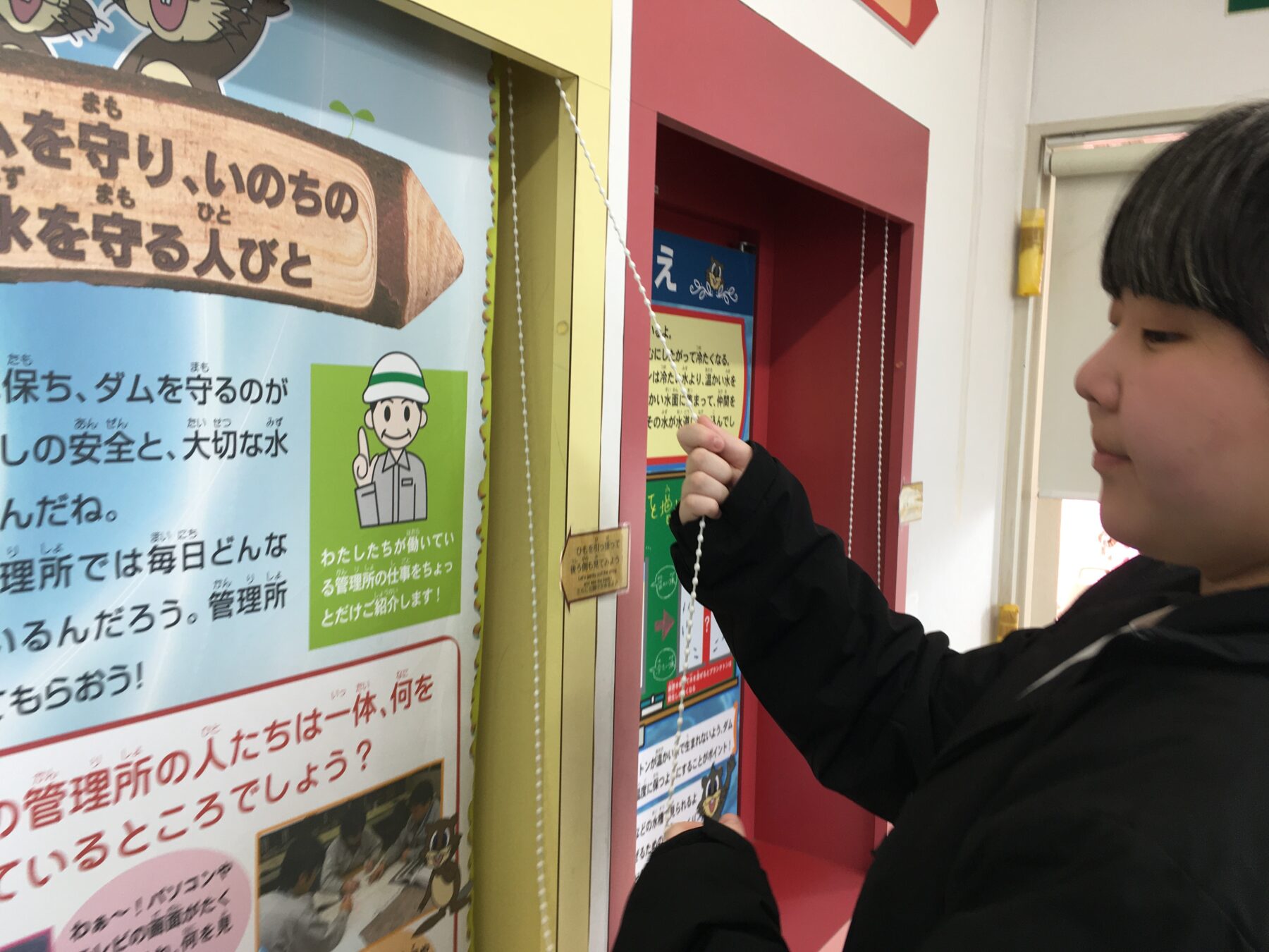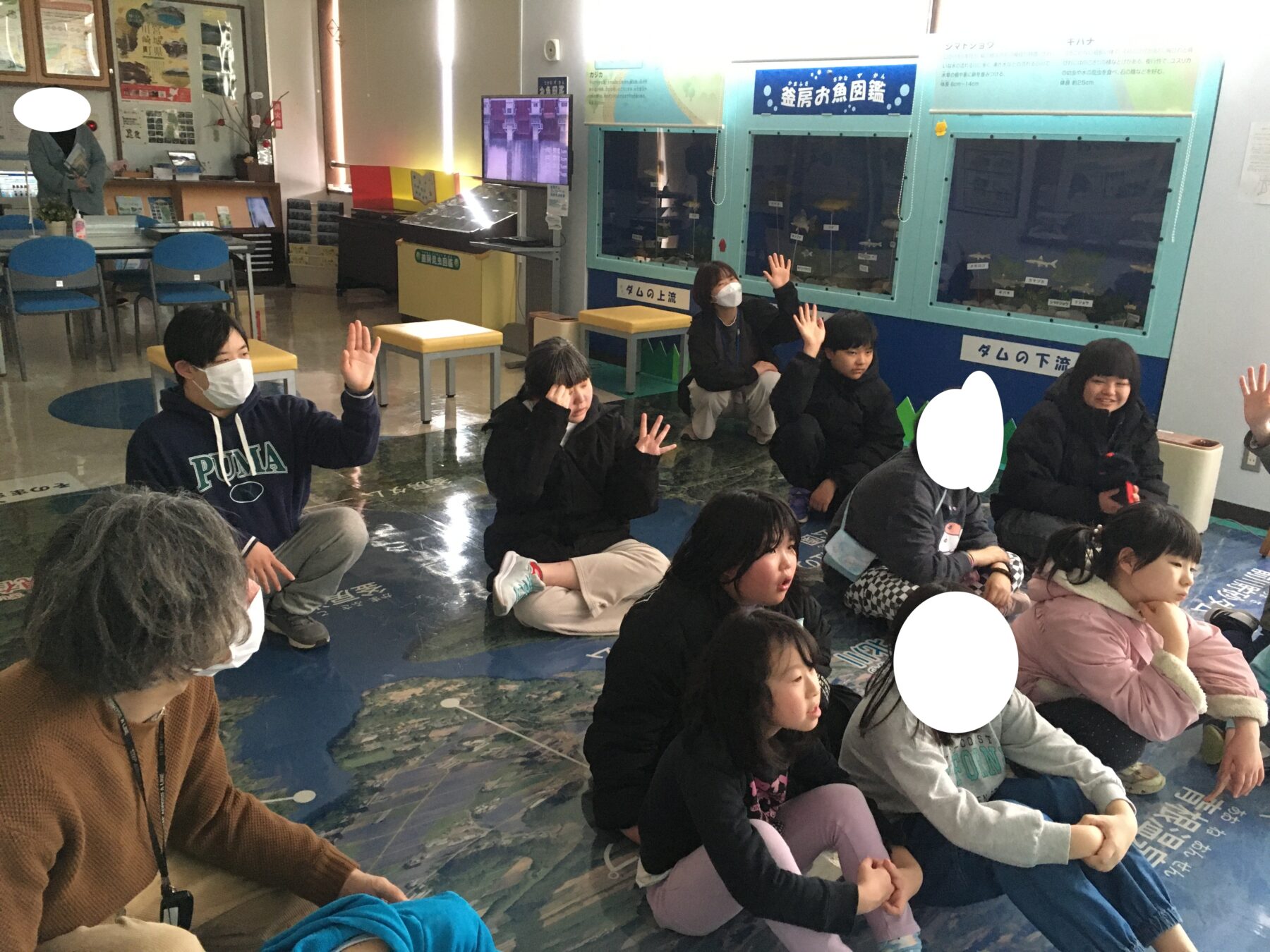 館内では、スライドを見ながらダムの働きや、ダムについてのクイズに挑戦しました。💪