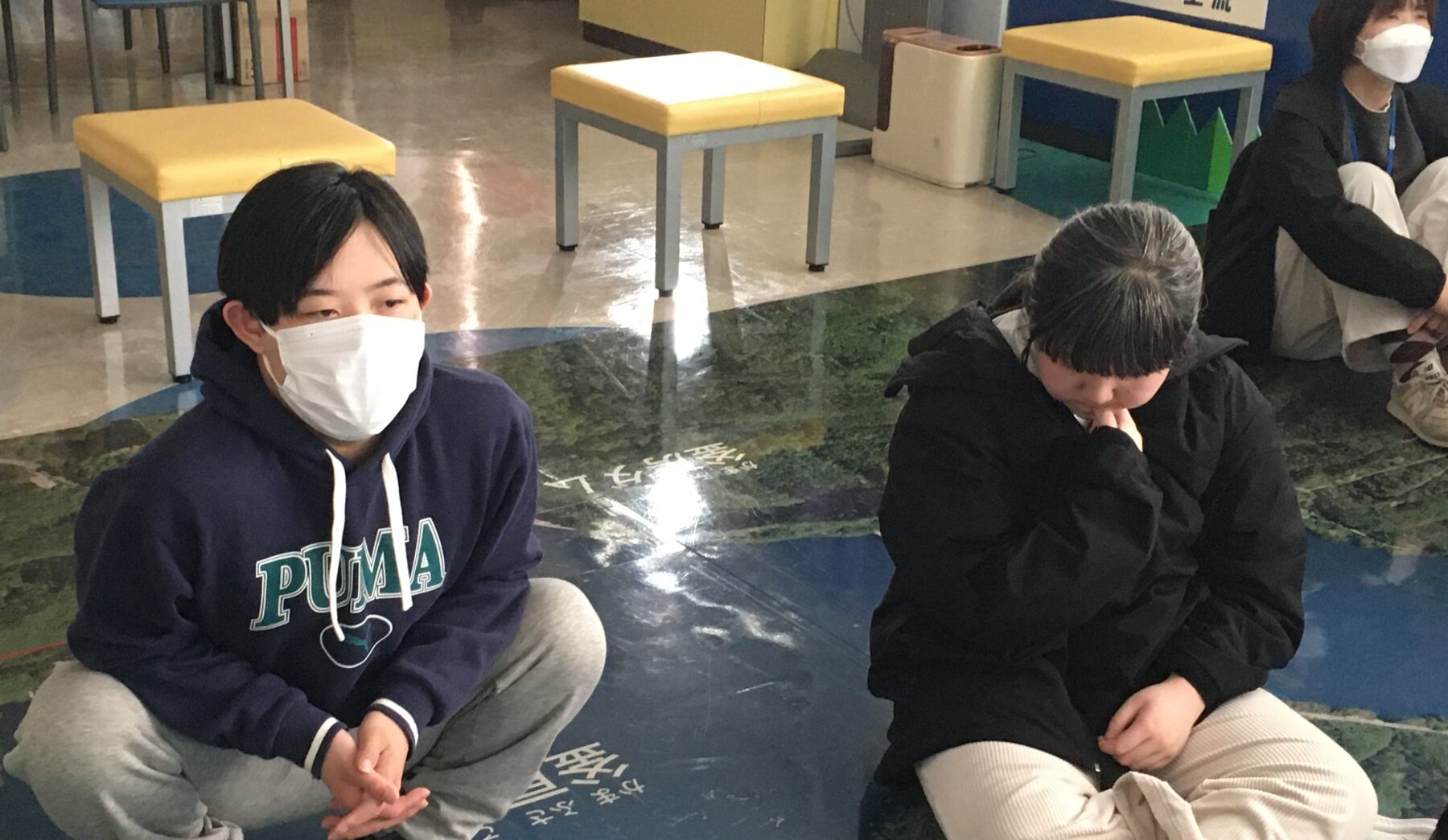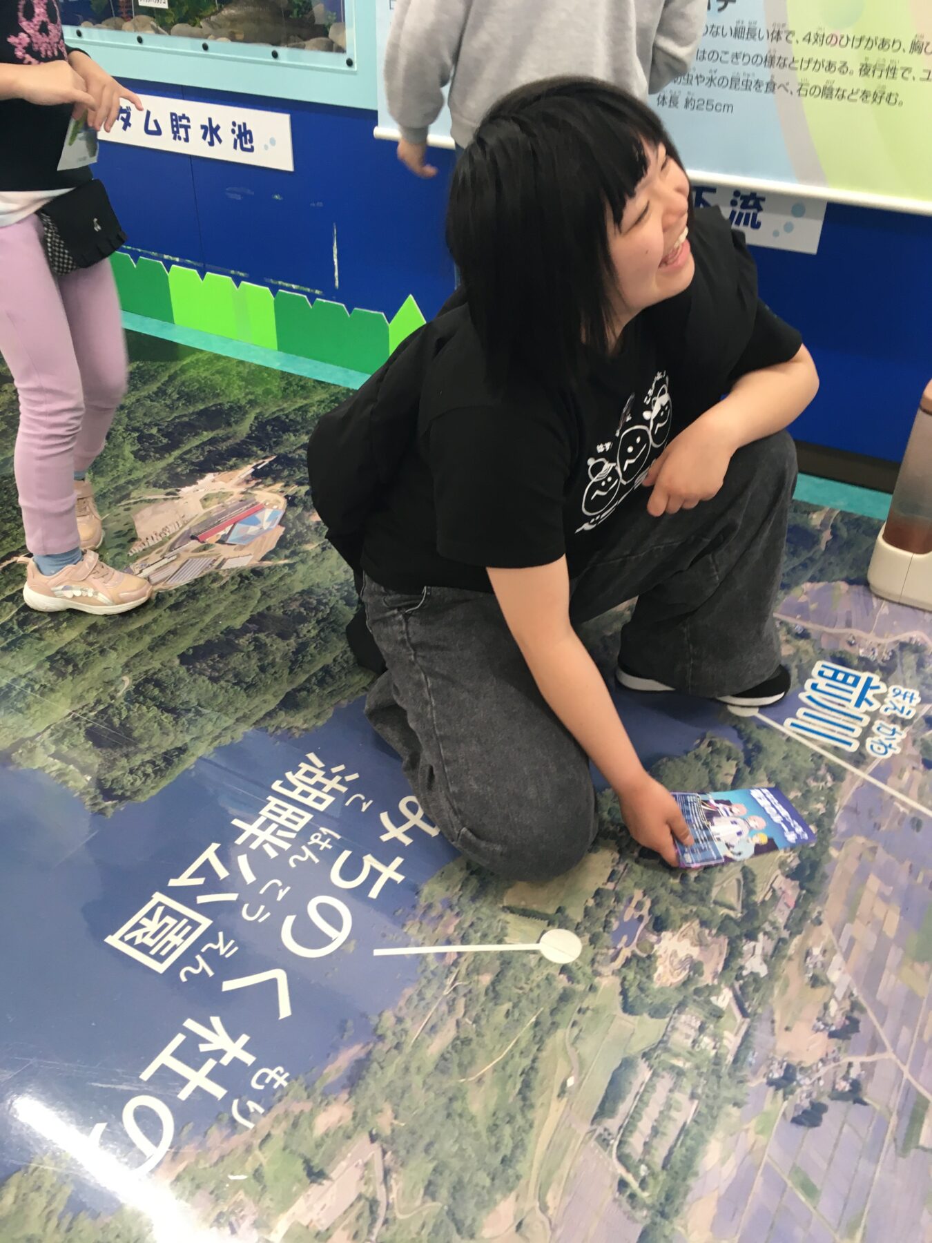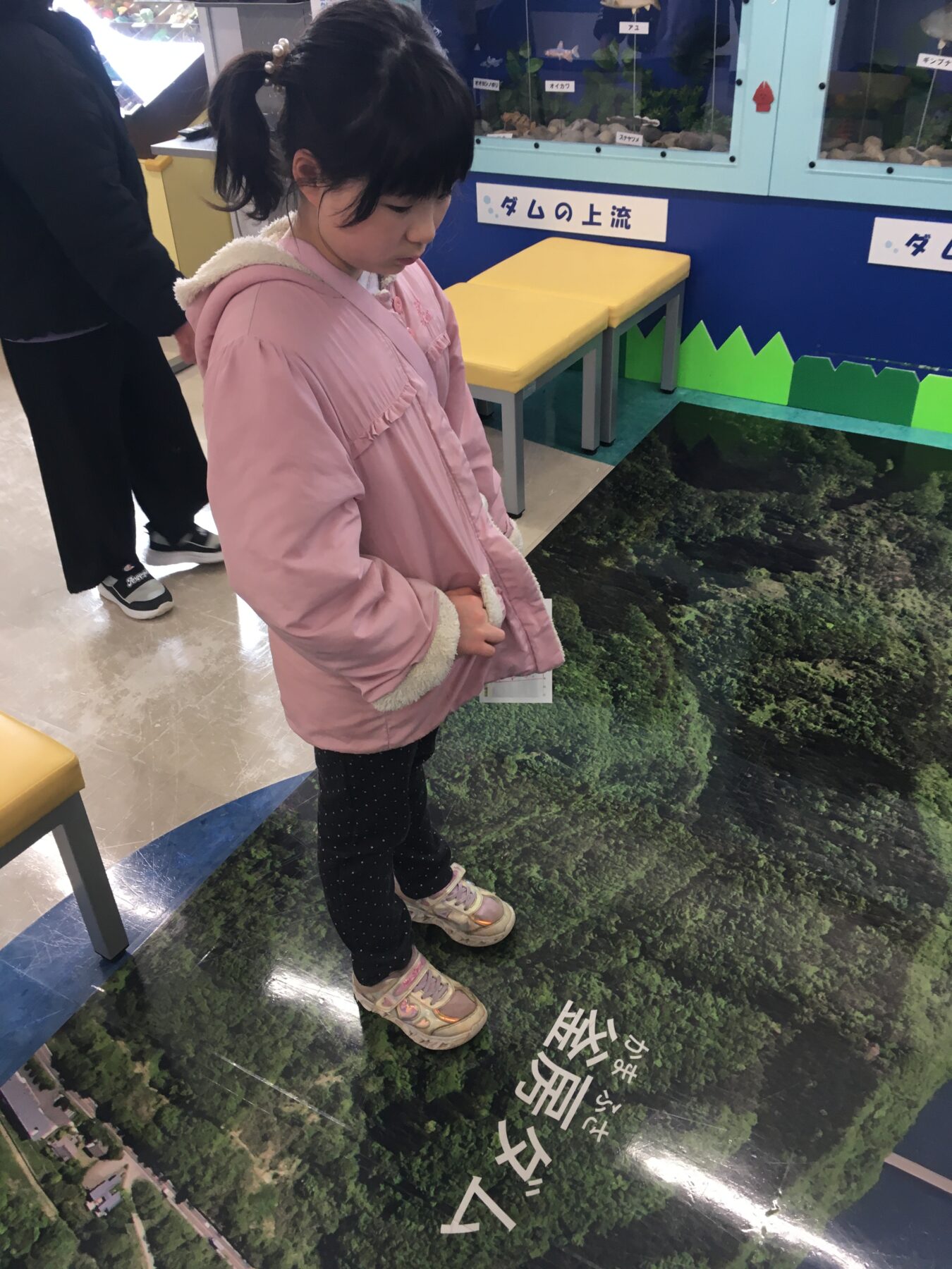 そして、床にはダム付近の大きな航空写真が!📷✨