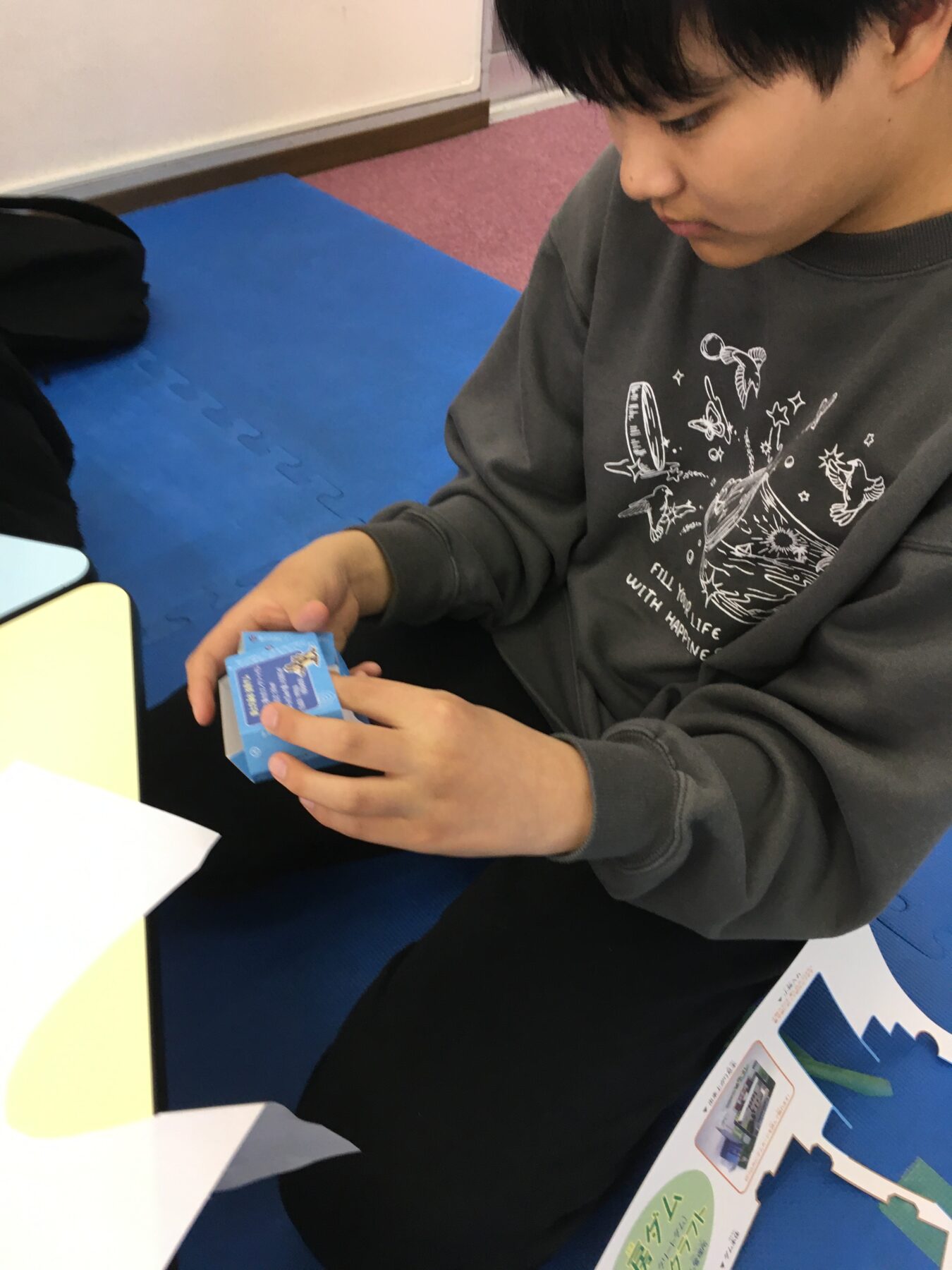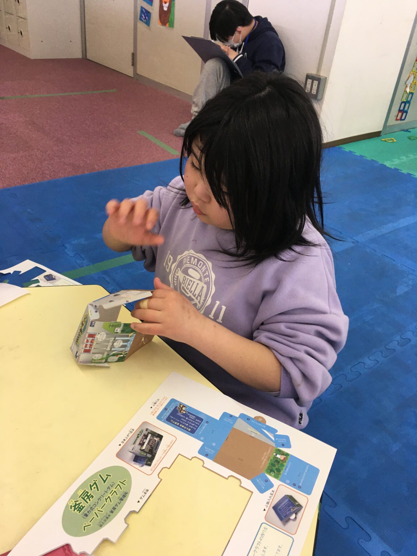 ふれあい学習資料館の方からいただいたお土産のペーパークラフトを作るお友だちもいました。