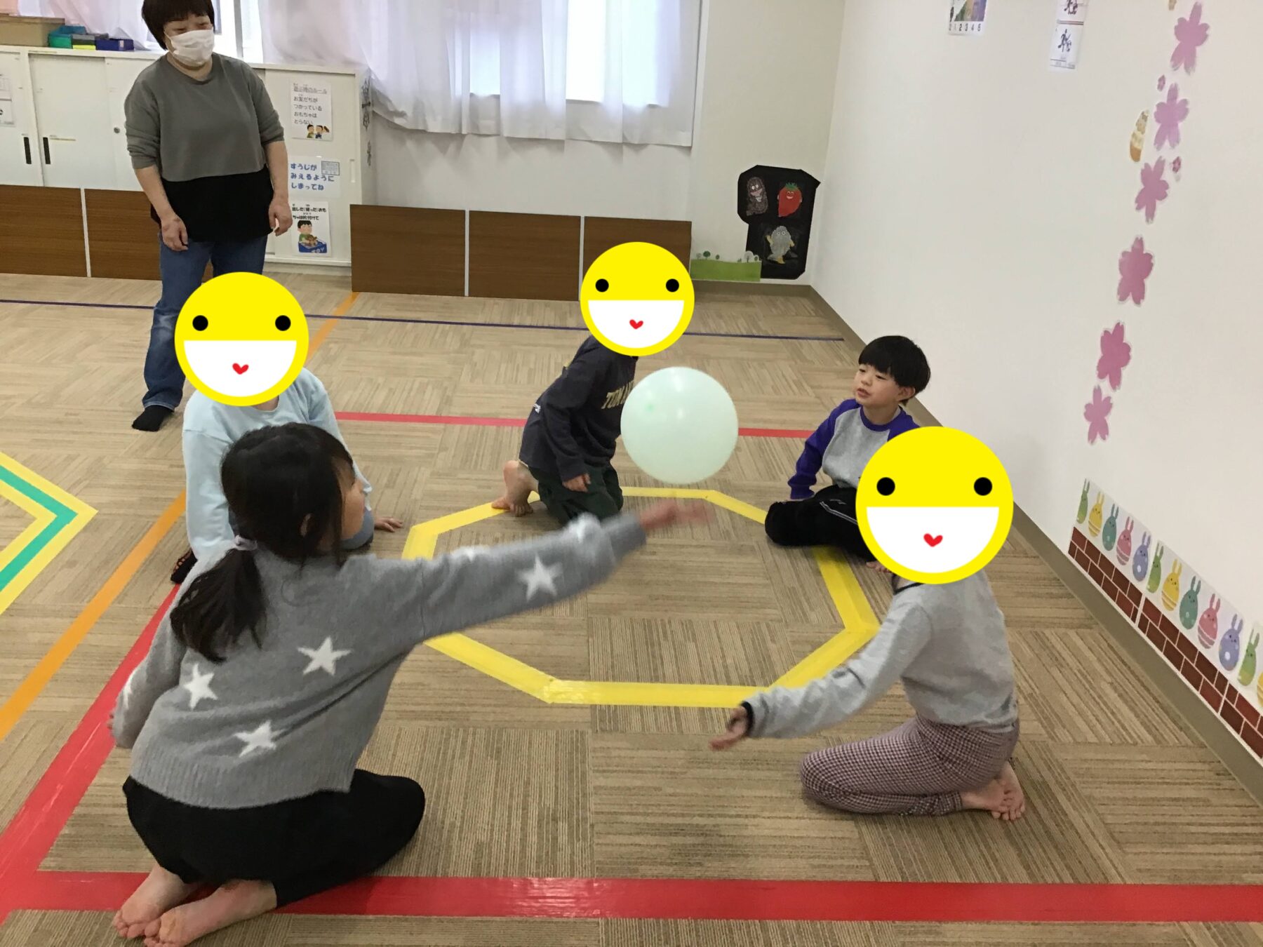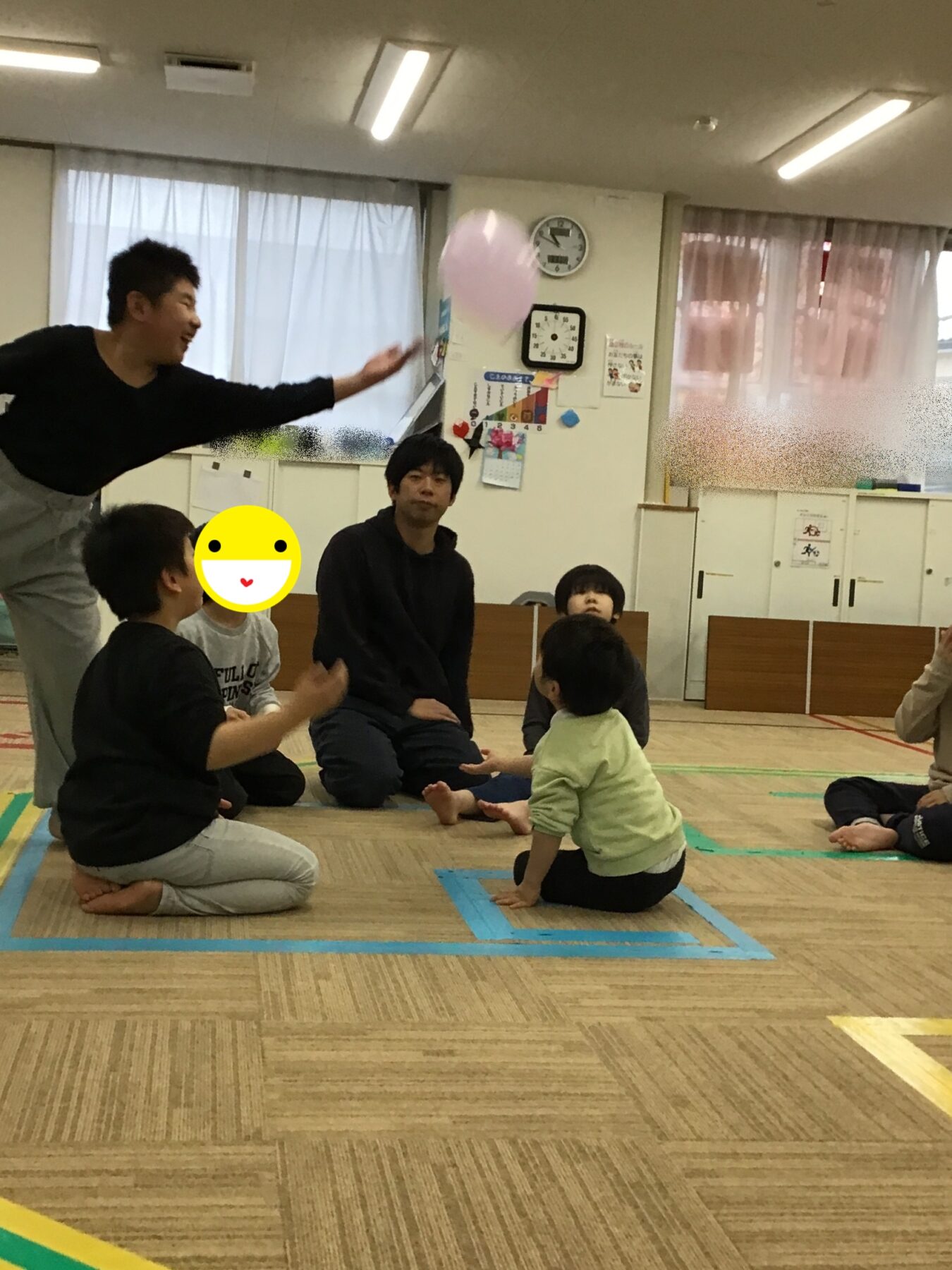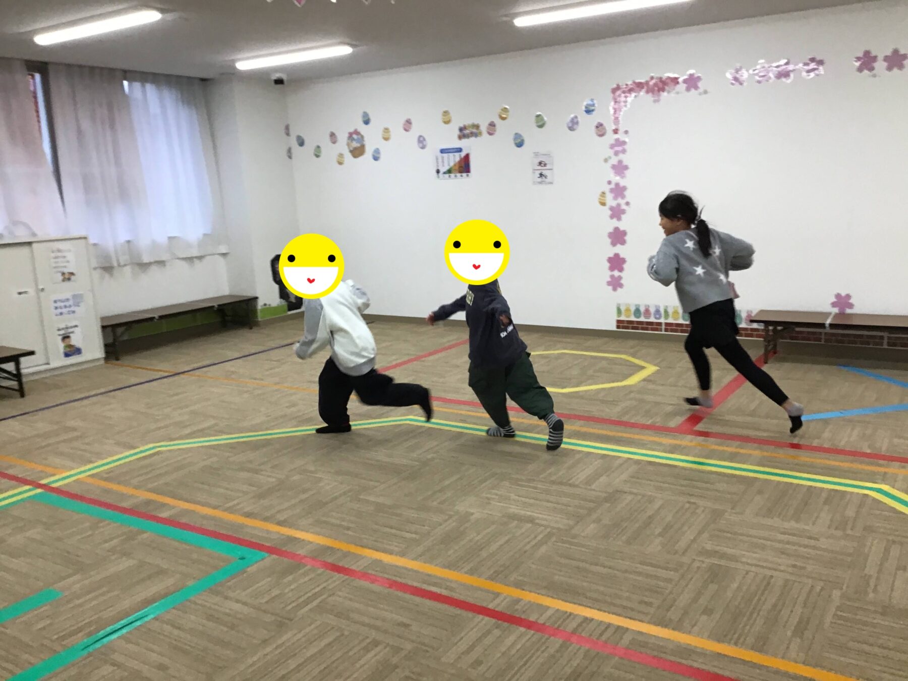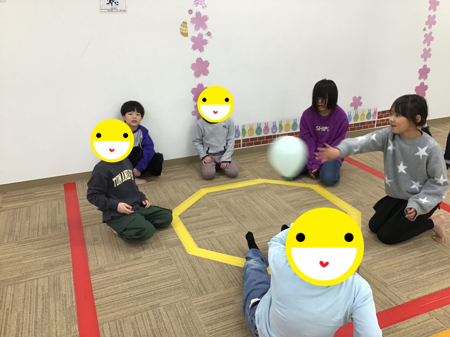マラソンや準備体操、ツイスターゲームに風船バレー。