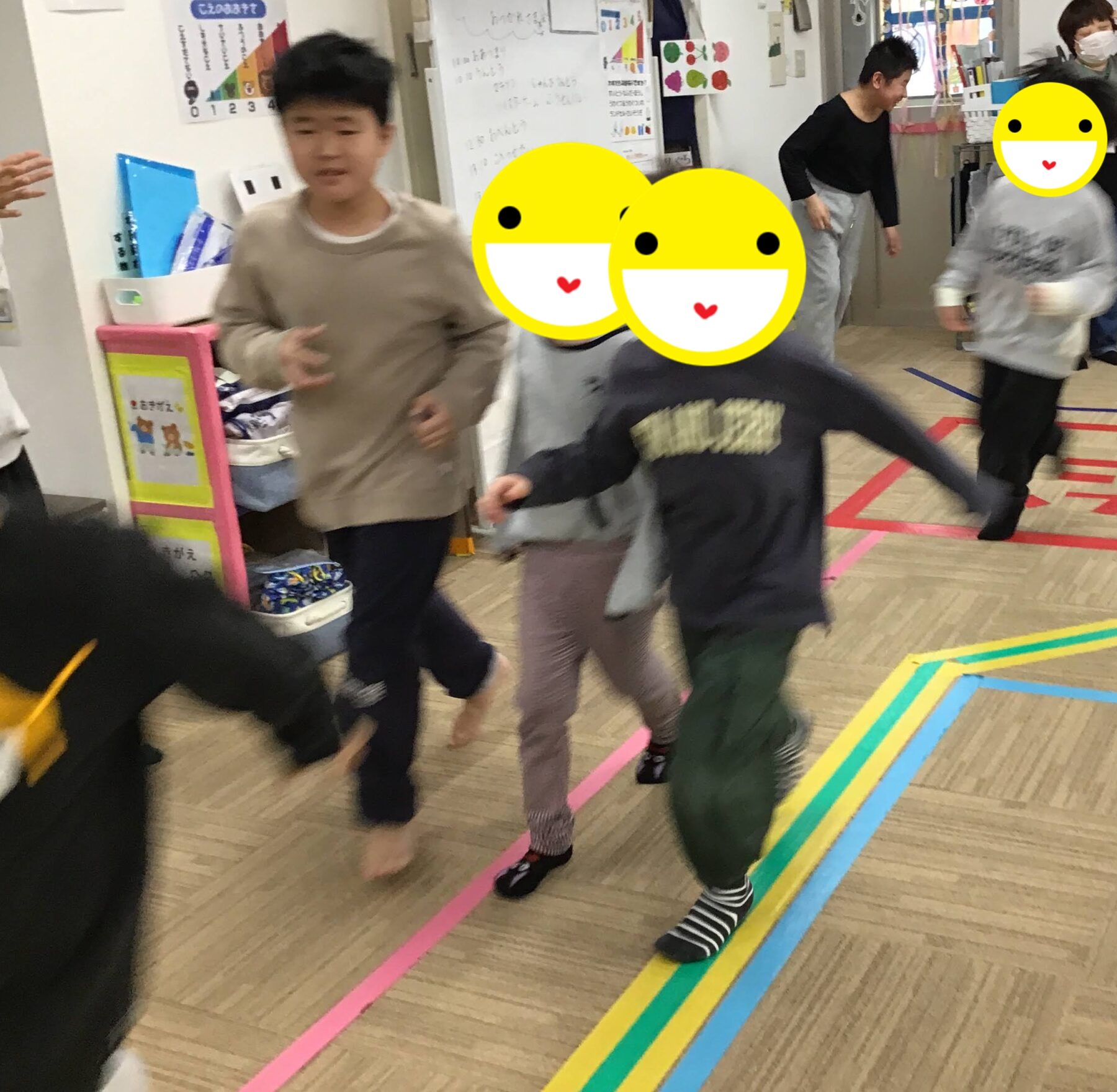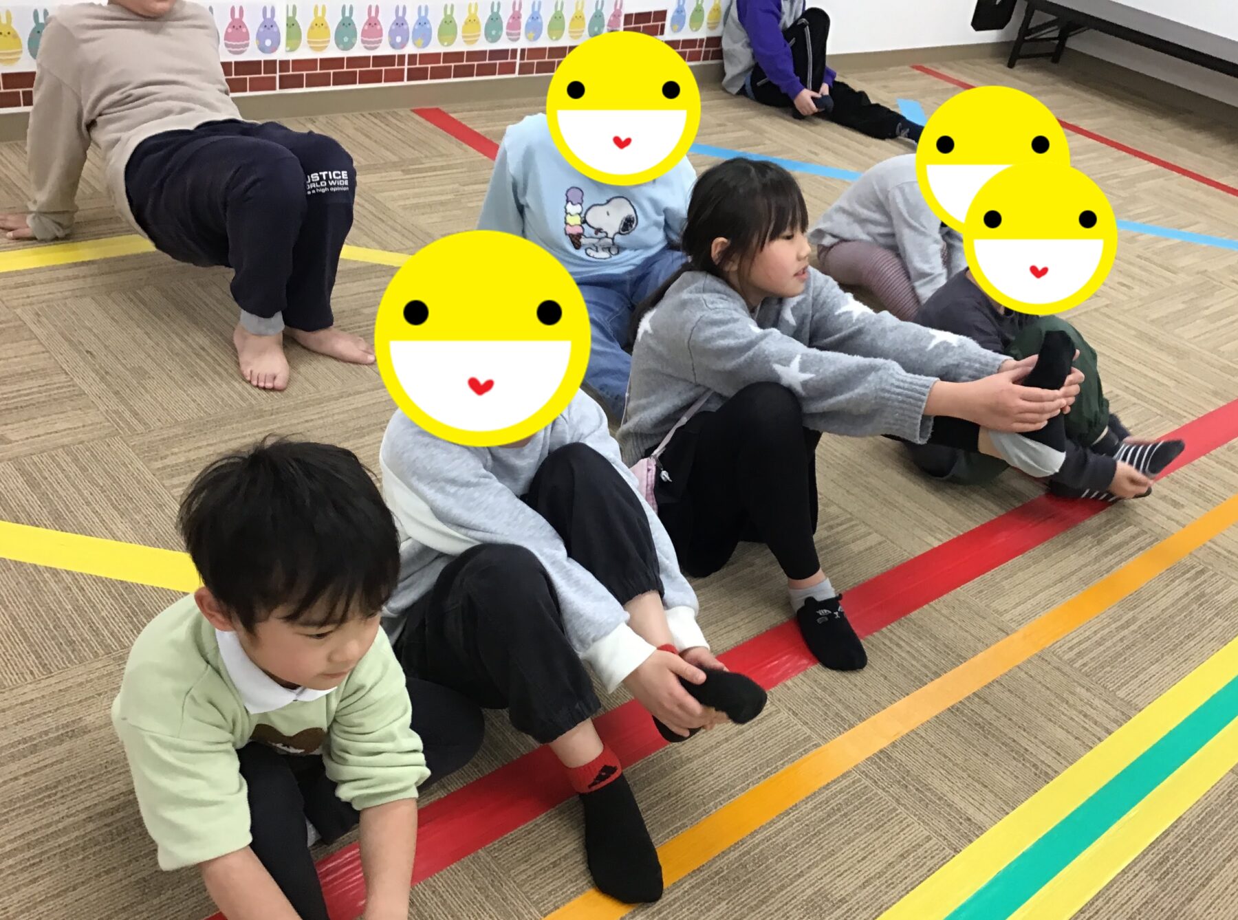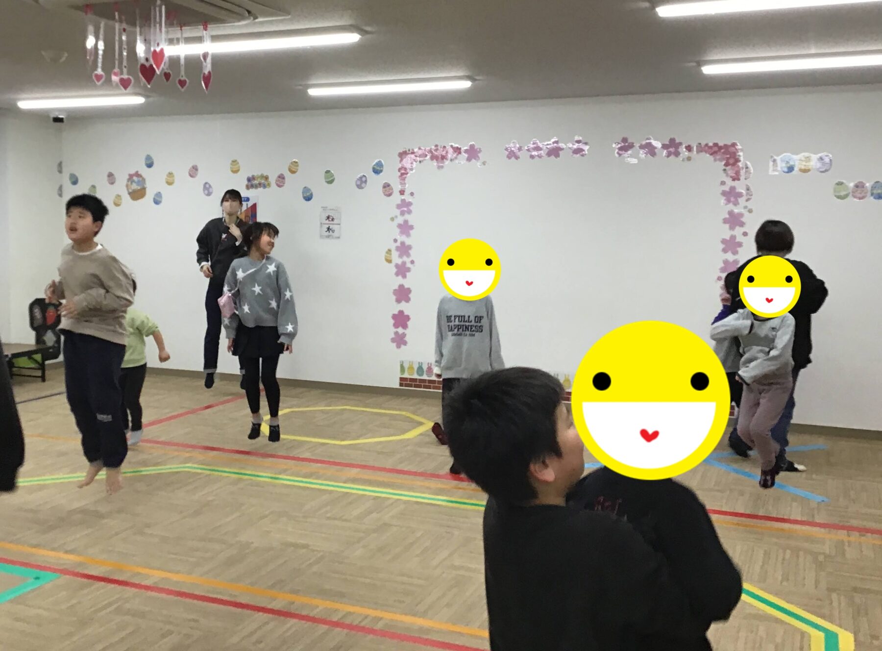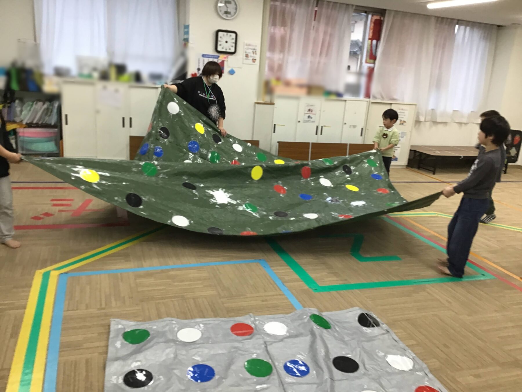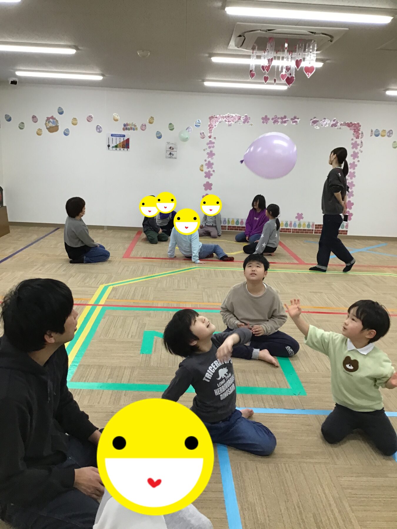 マラソンや準備体操、ツイスターゲームに風船バレー。