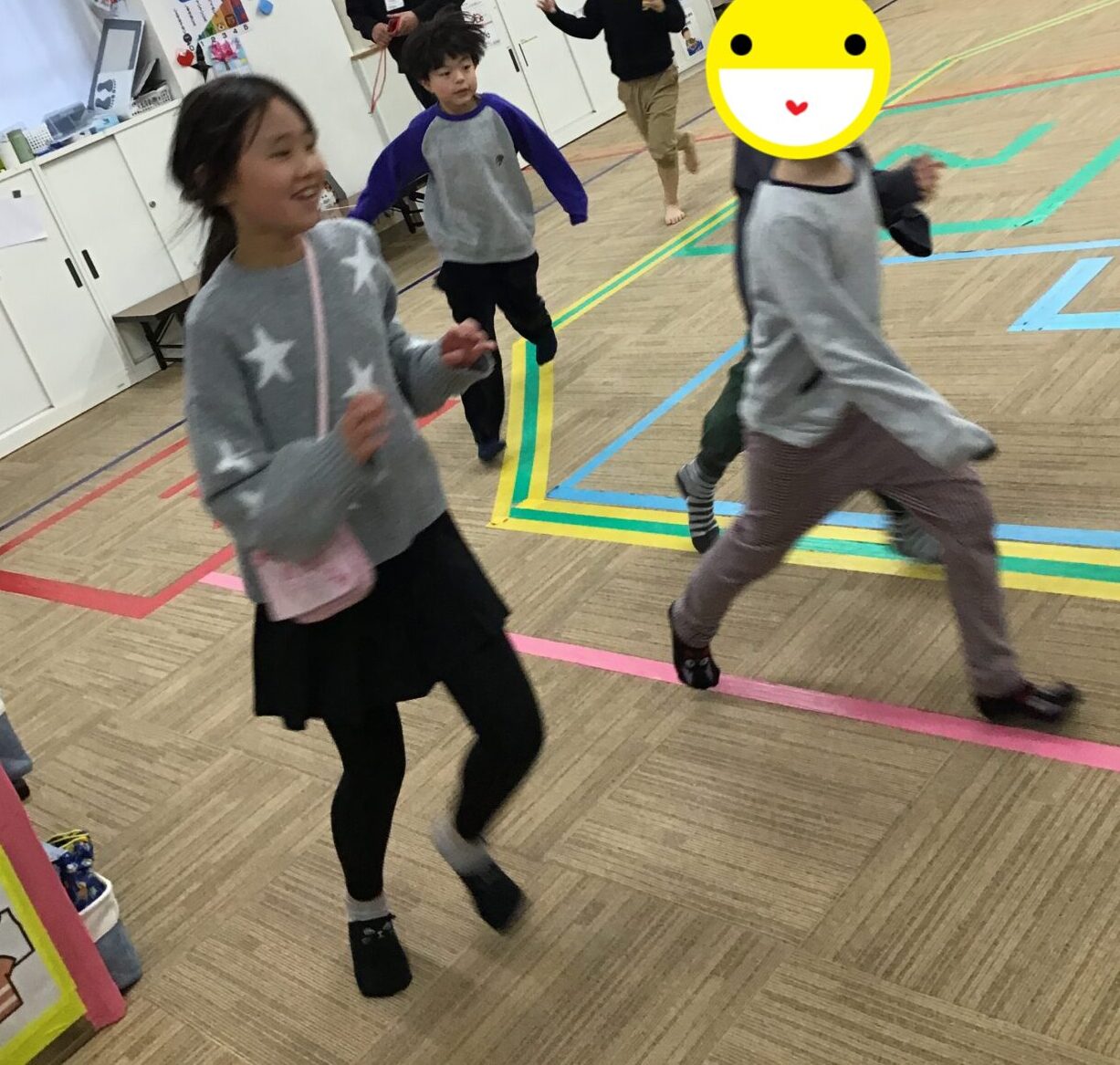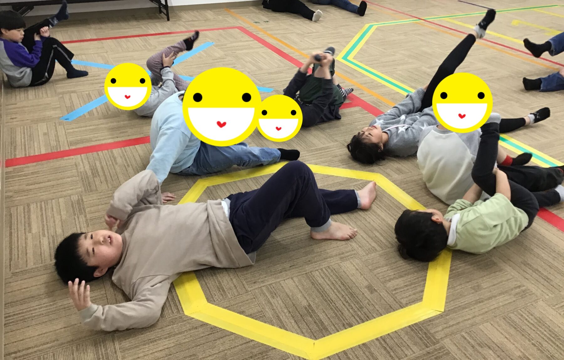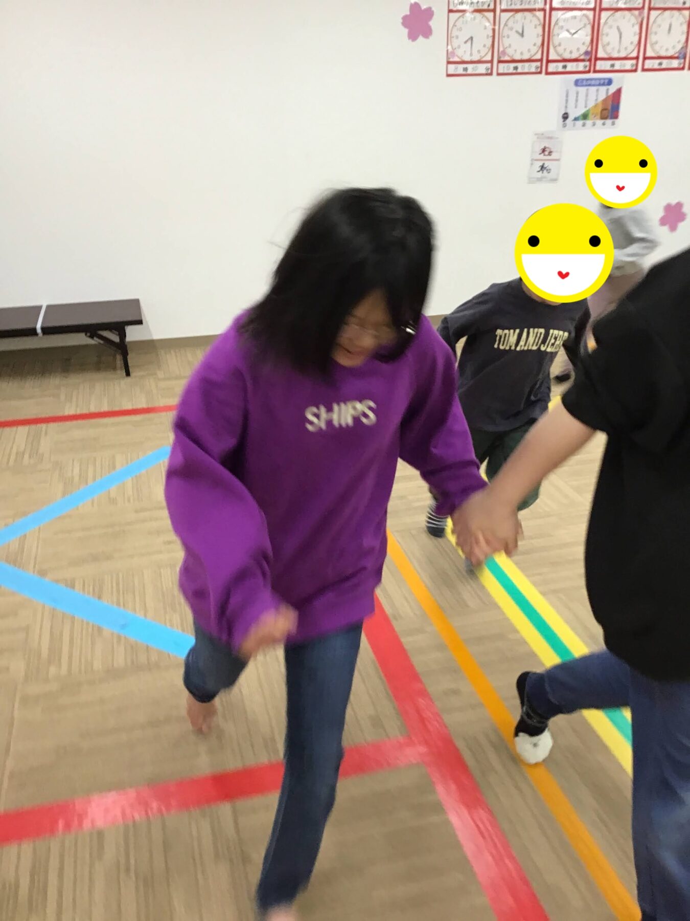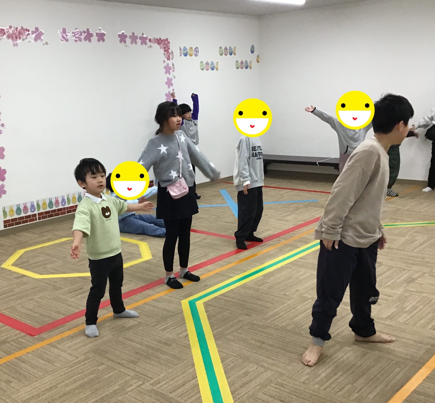 マラソンや準備体操、ツイスターゲームに風船バレー。
