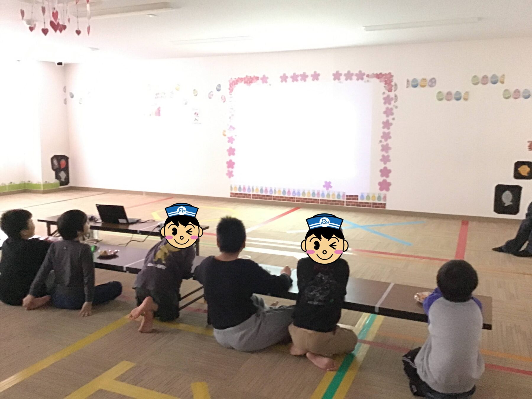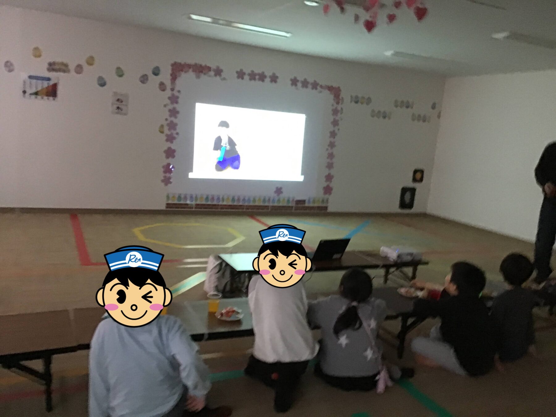 おやつの前に、みんなで1年間を振り返るスライドショーを鑑賞。