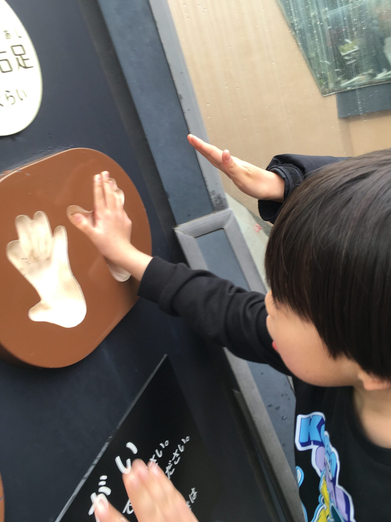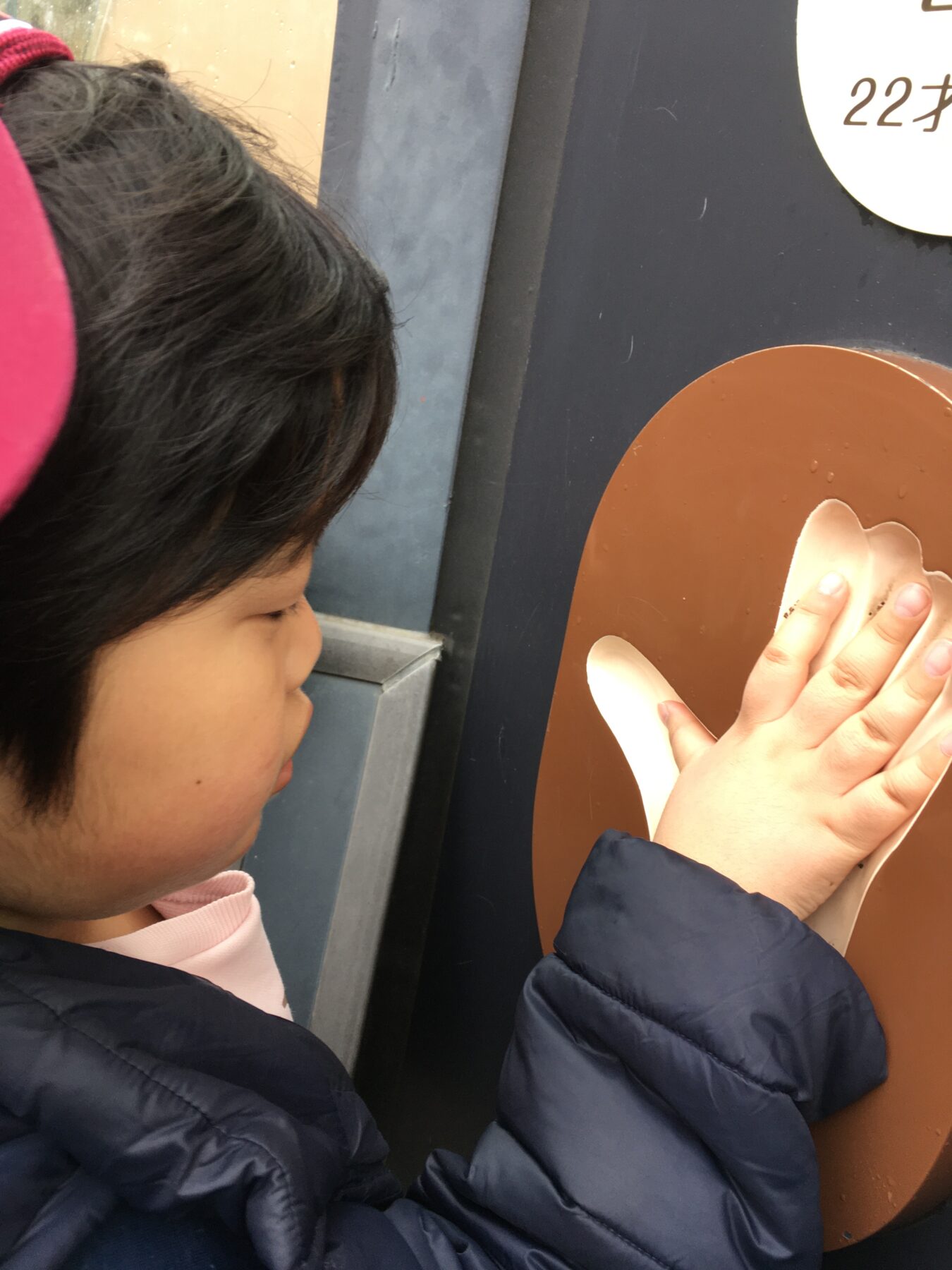 チンパンジーの手や足の大きさと自分の比べてみるお友達も。