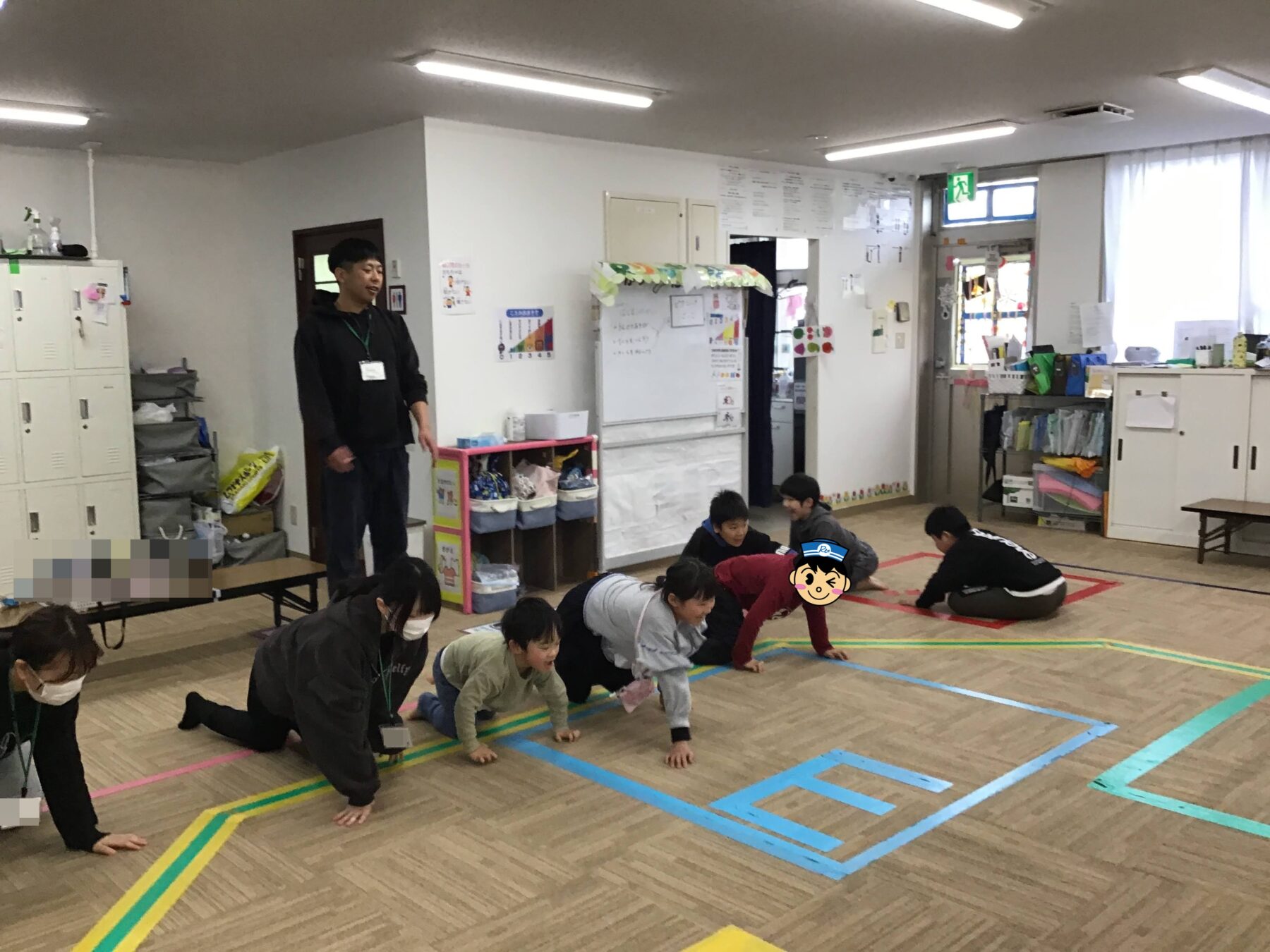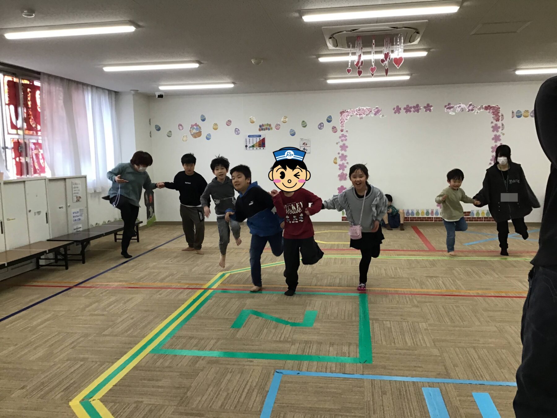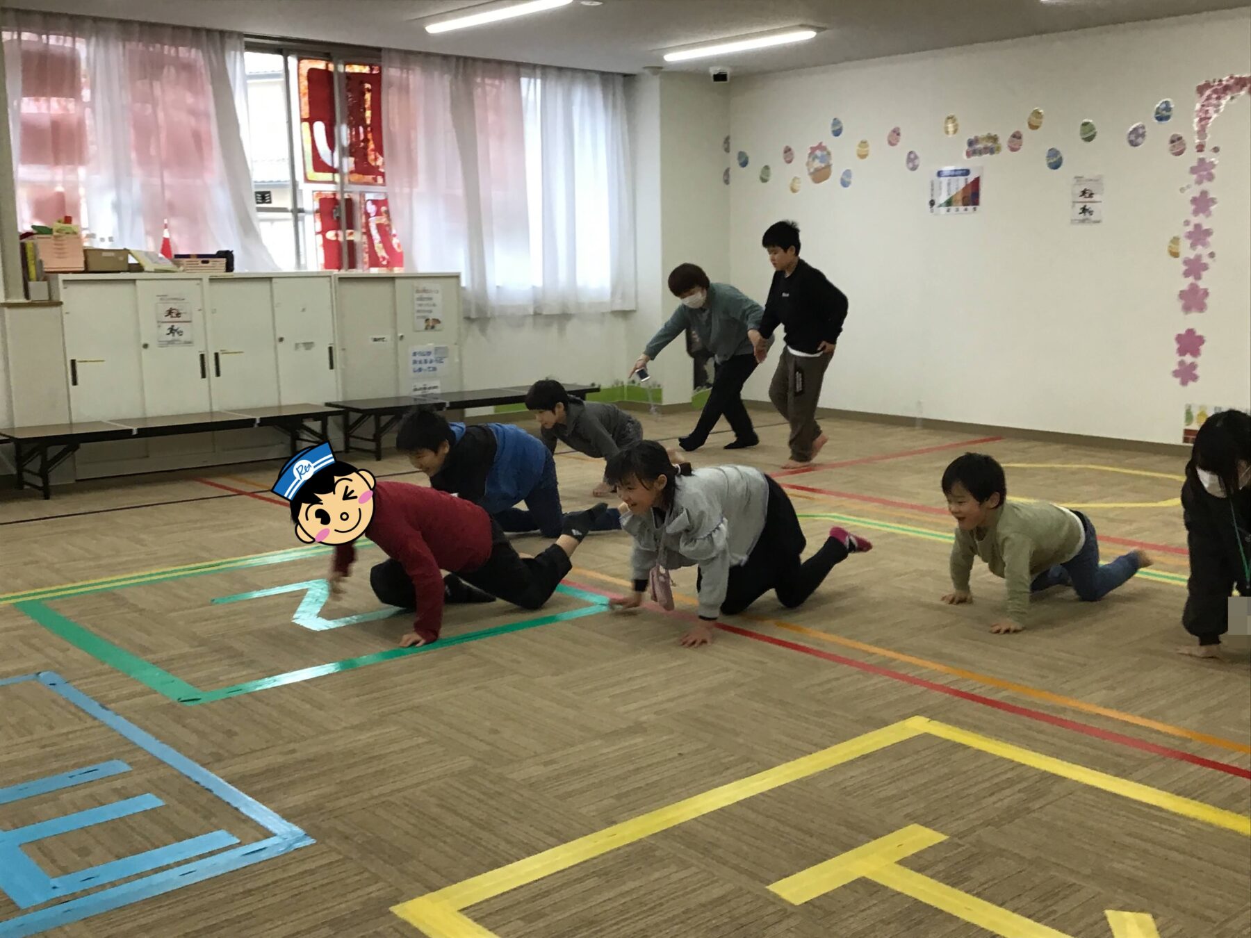 ラジオ体操やマラソンをしたり、体幹遊びをして身体を温めました。