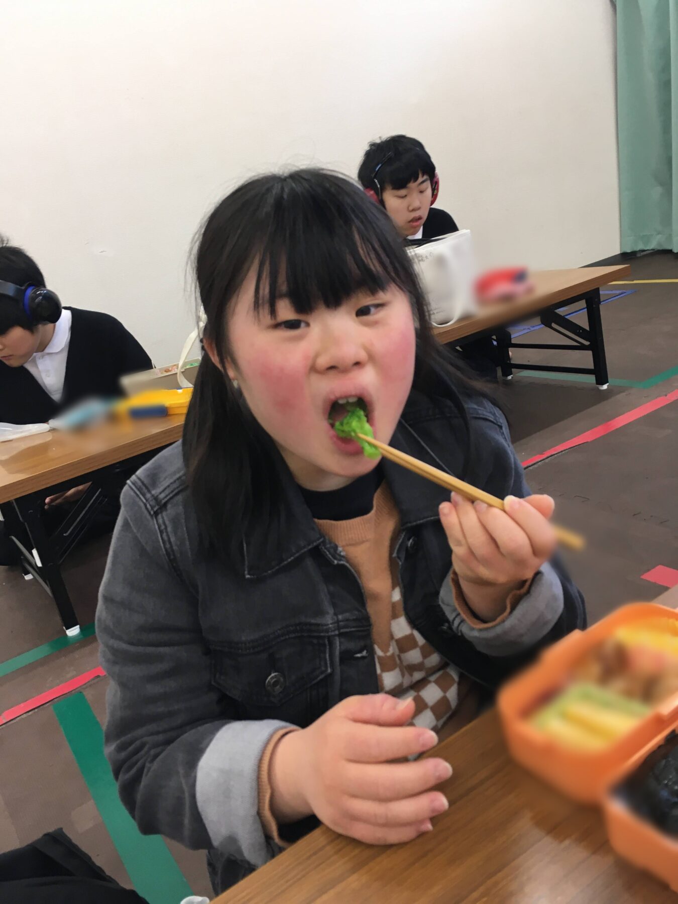 みんなが到着し、新しいお友達やクラス、先生のお話しなど教えてくれた児童、まずはそろって美味しいお弁当からスタートです😄