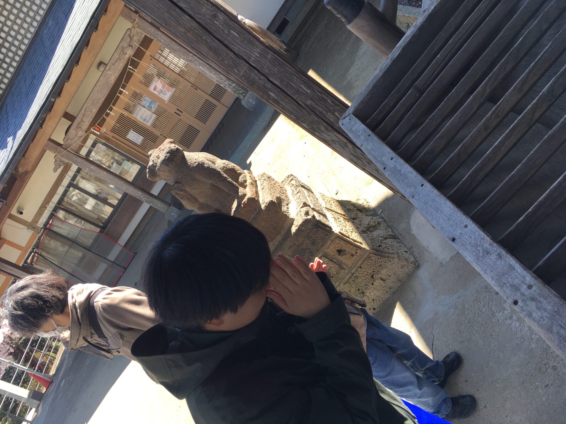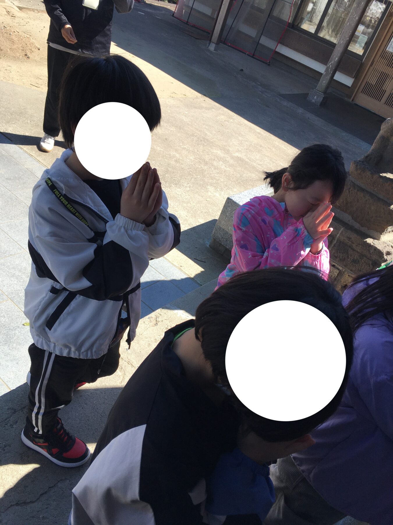 早く学校が終わったお友だちと近くの神社に新学期の抱負やお願い事をしにきました。
