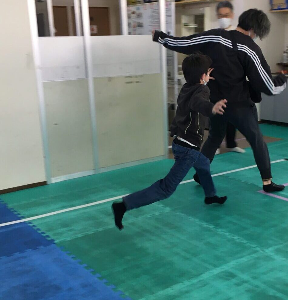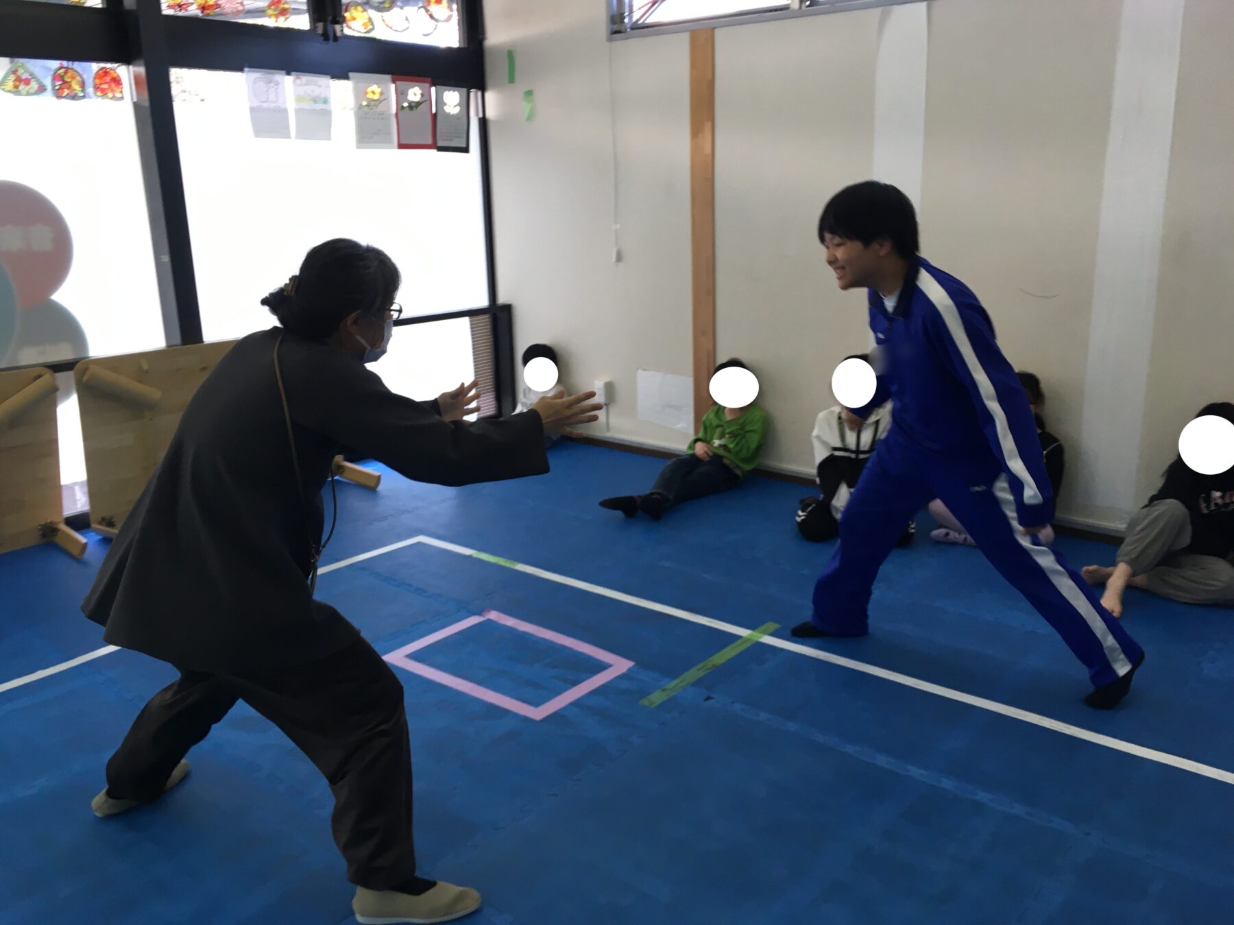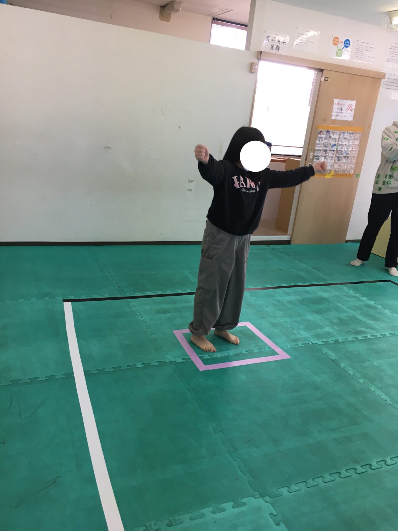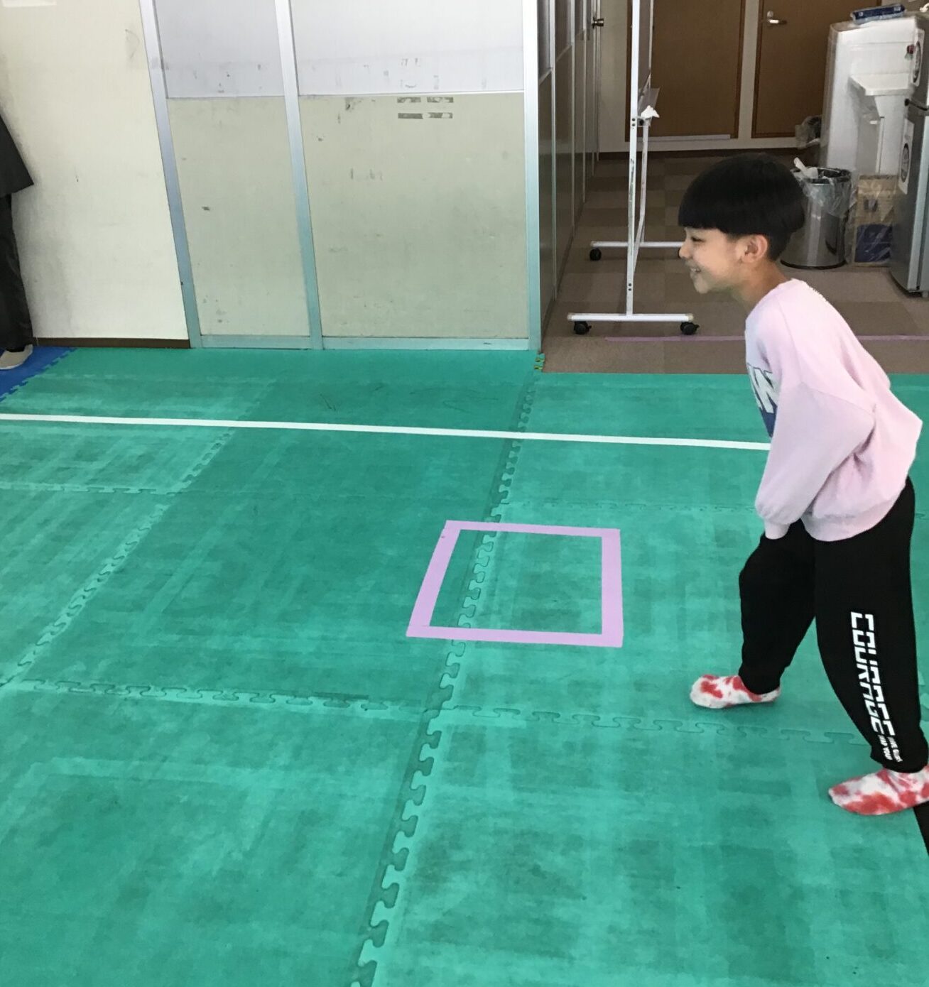音楽が鳴っている間は動いて、音楽が止まったら鬼に捕まる前に枠の中に入ります。