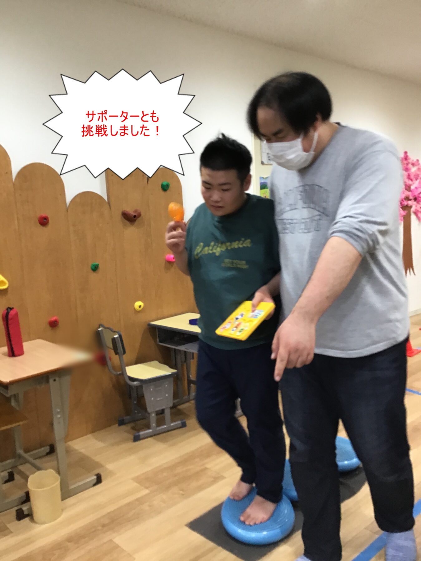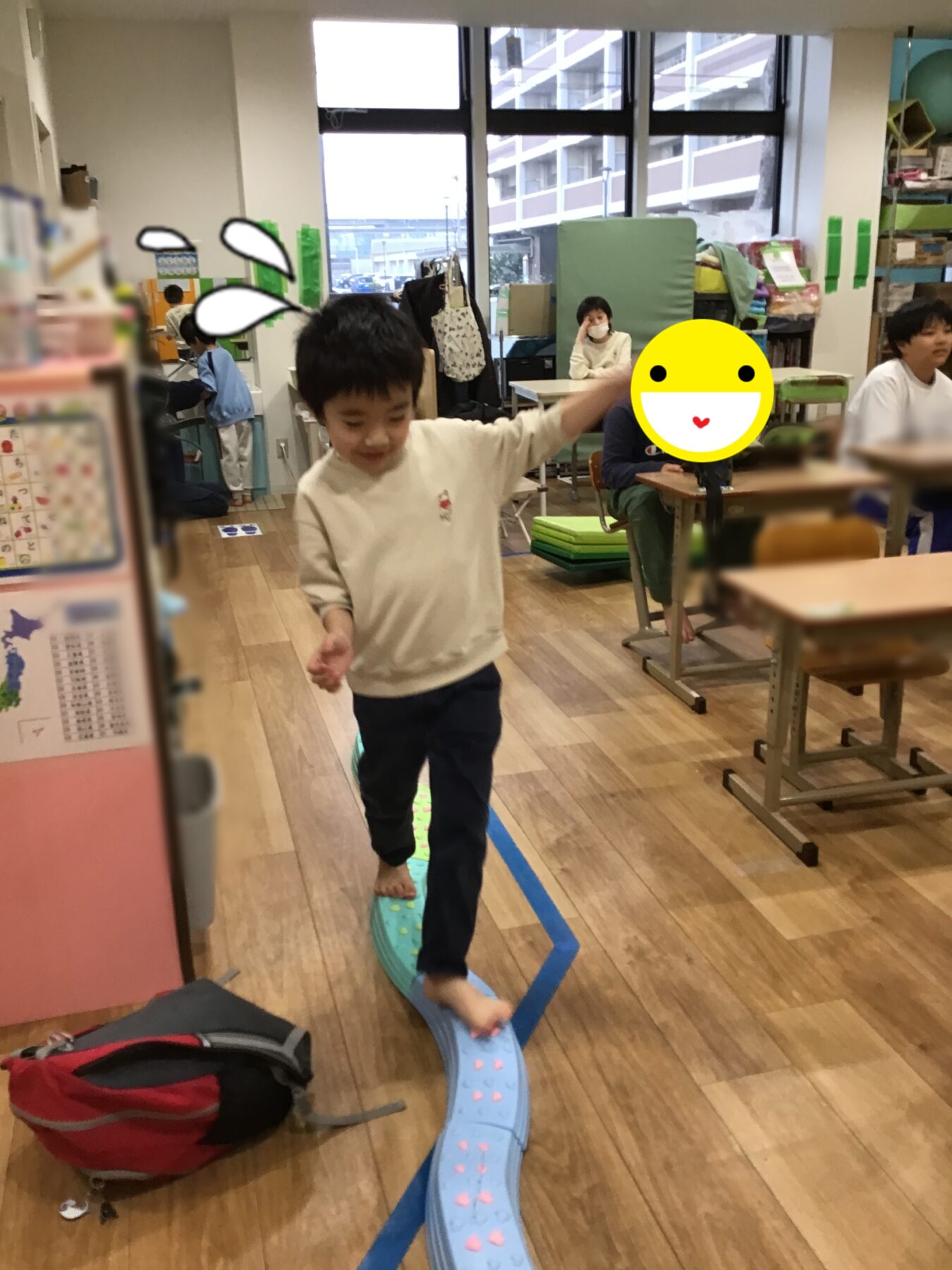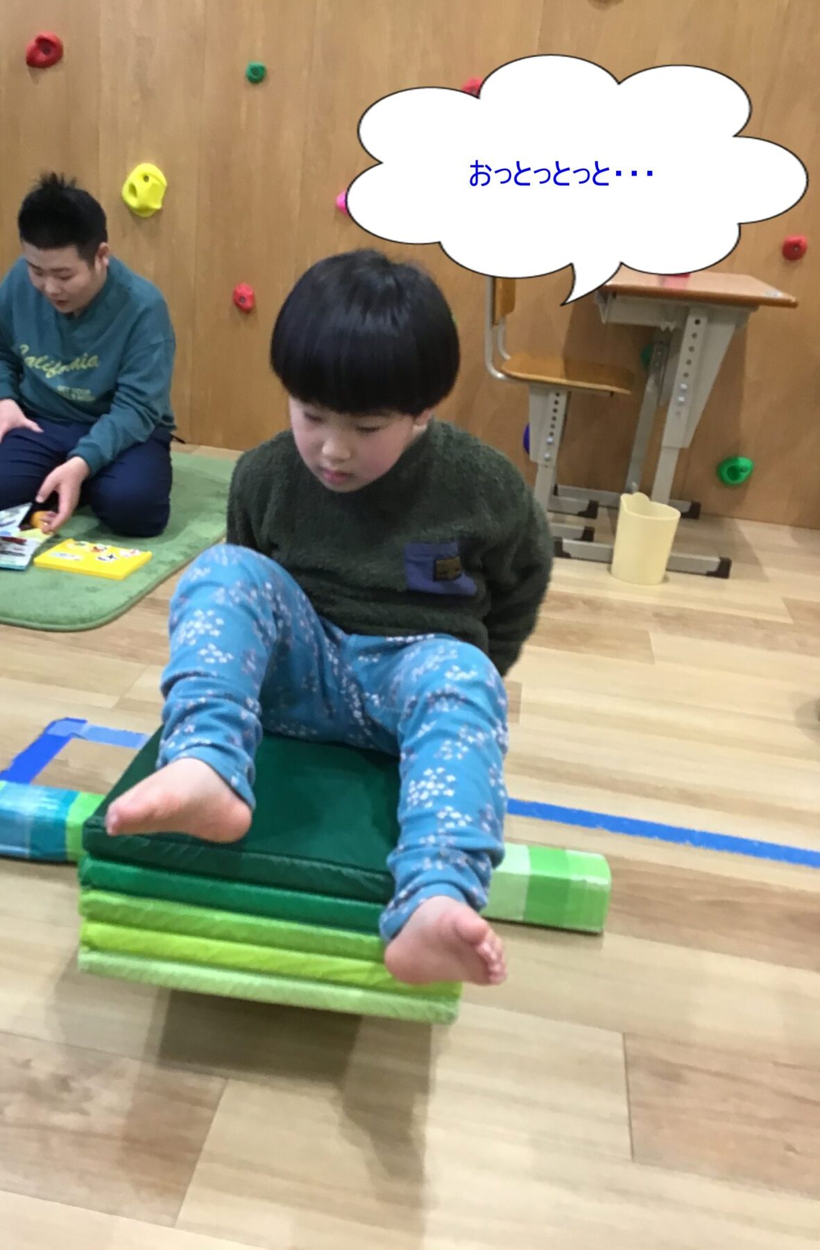 ①凸凹道やバランスボードを進んでいきます。🥎