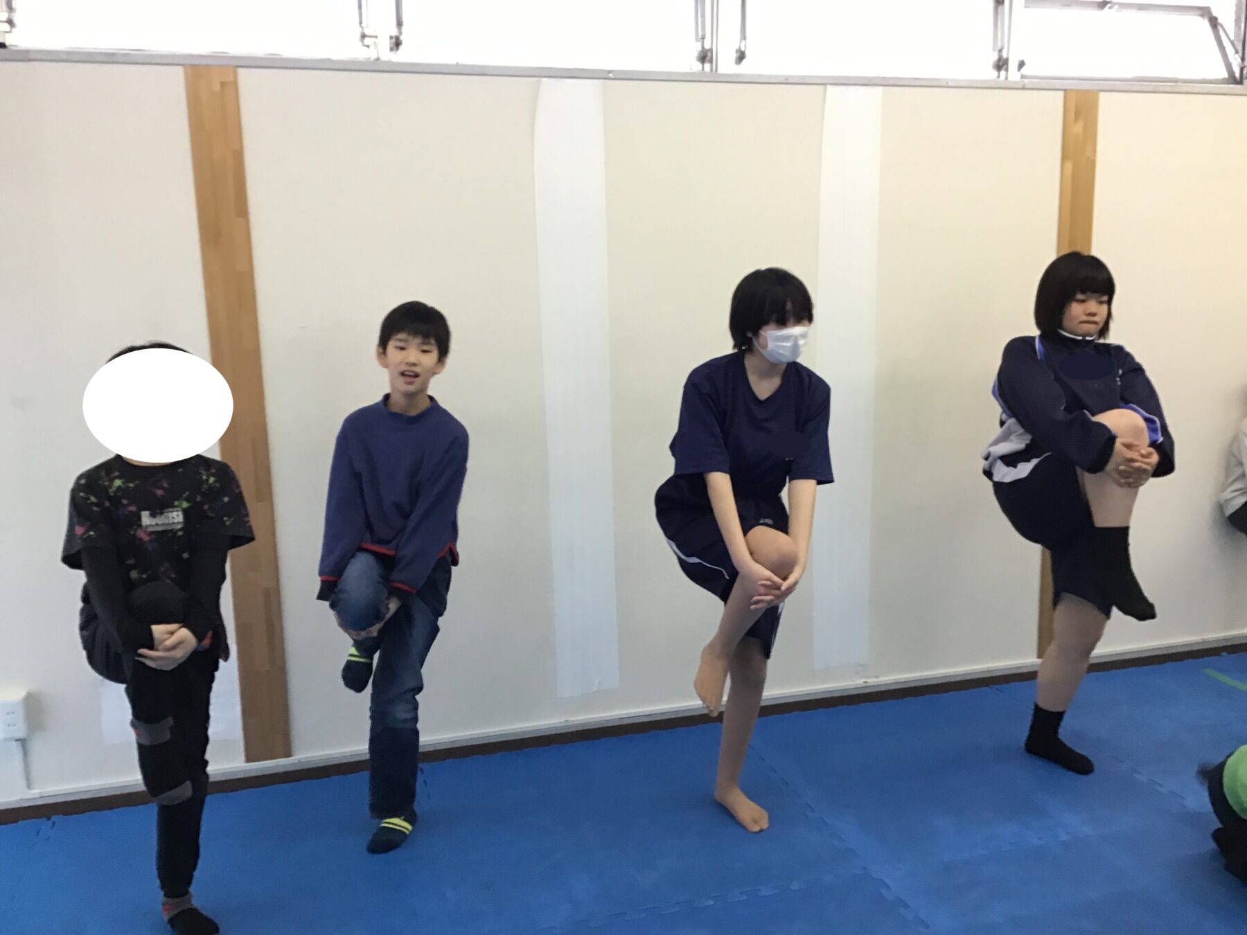 まずは準備運動。体をストレッチでほぐしてから始めるよ!