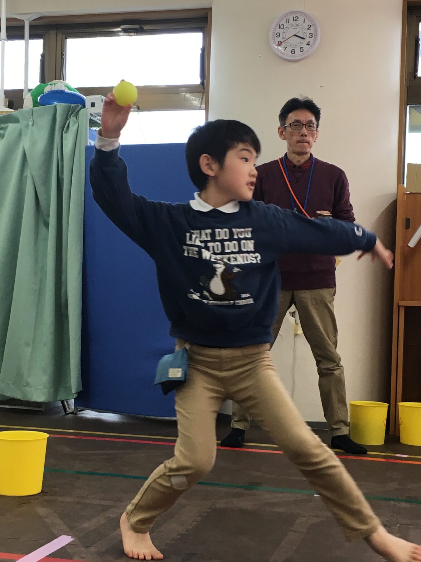 今回は投げるボールも軽いものと少し重いものから選べるようにしています。