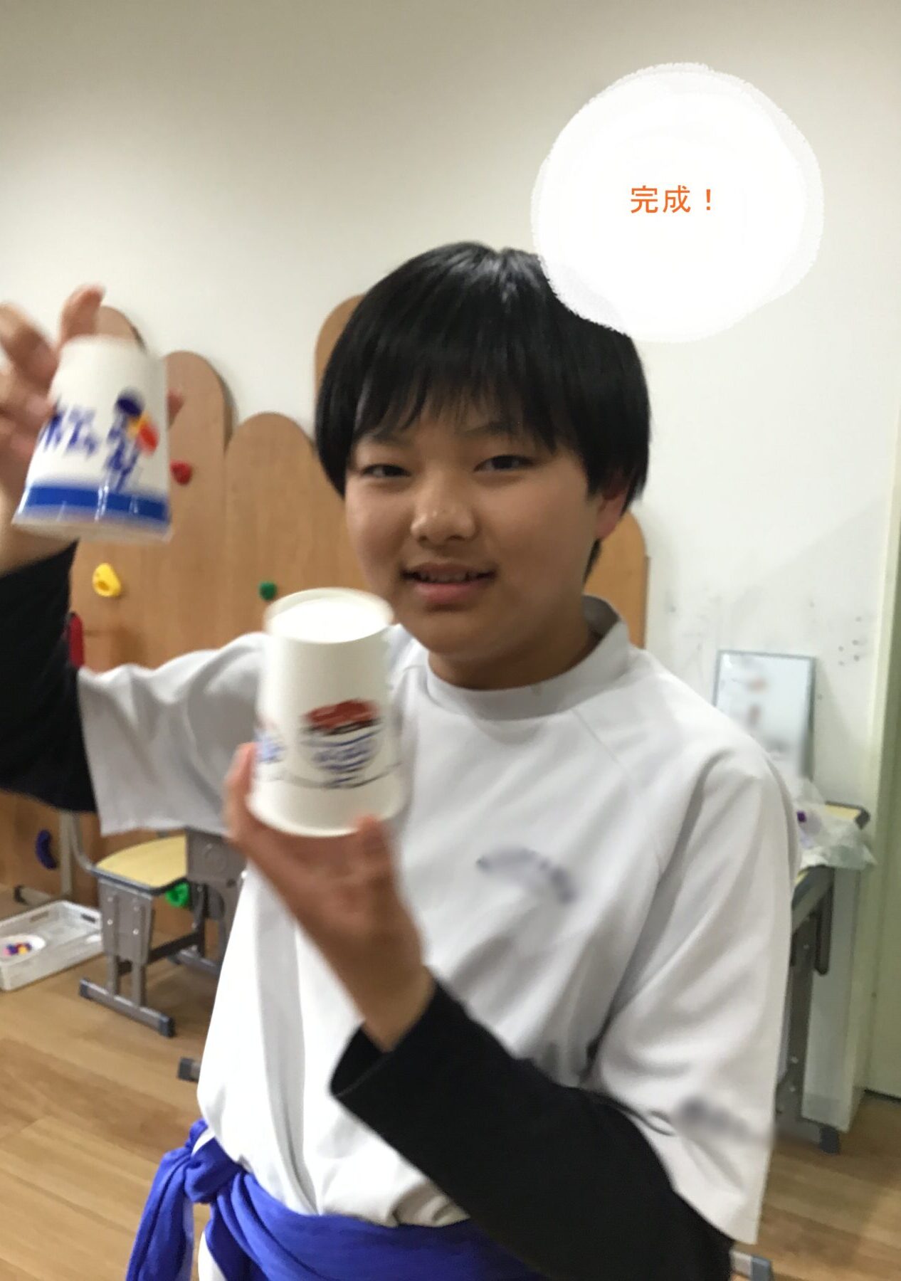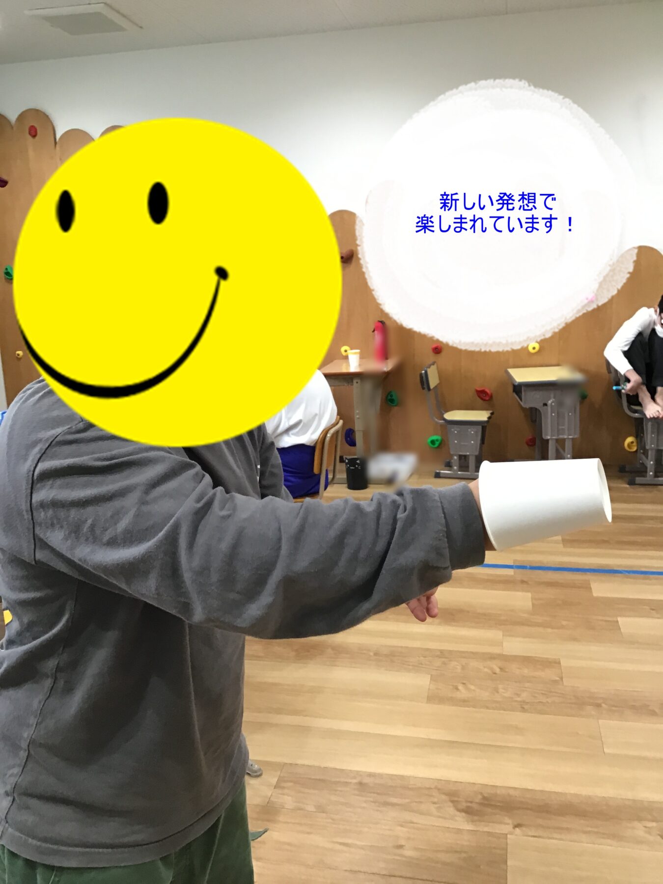 本日の活動では2つの紙コップの片方に輪ゴムを付けて、ロケットを作りました!