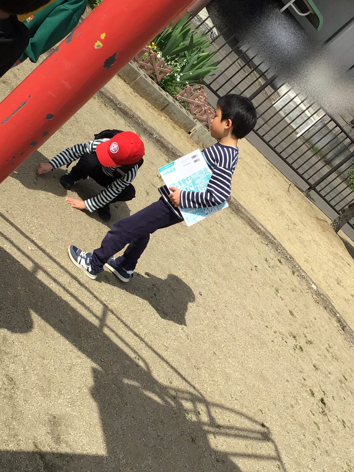 今日は室内活動だけでなく、近くの公園へ行き外遊びも行いました。