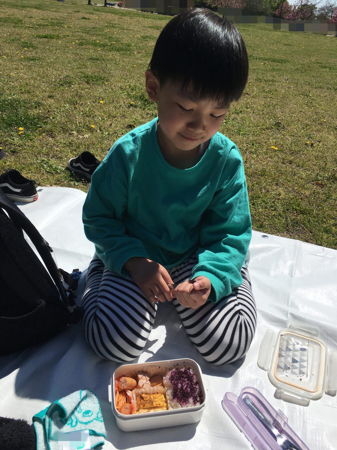本日は『加瀬沼モリリン公園』へ遊びに行きました。🌞お日さまも出ていたので、外でお弁当タイム。