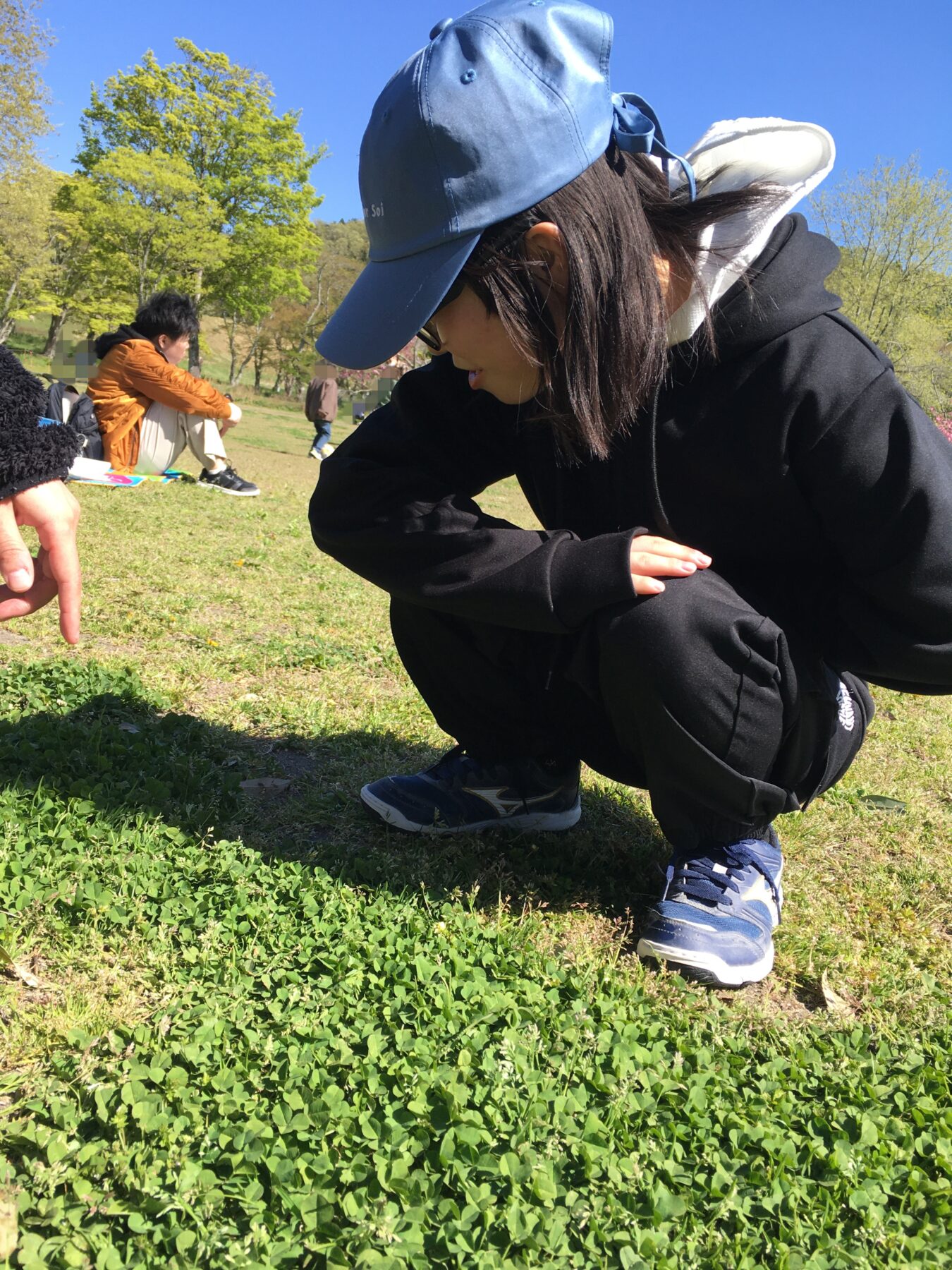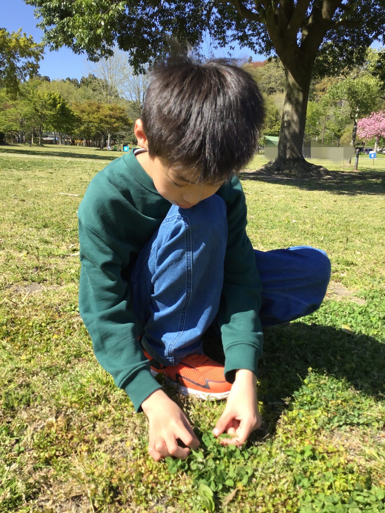 四つ葉のクローバー🍀探しをするお友達。「さっき見つけたんだけど…」となかなか見つからない様子でした。
