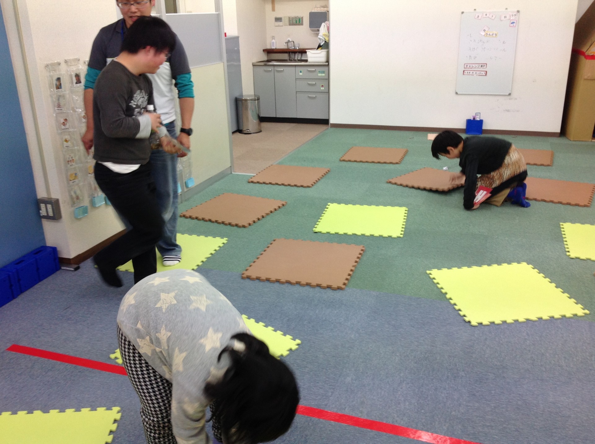 裏に数字が書いてある!と誰かが気づくと、番号の順に並べればいいとすぐ理解していました。