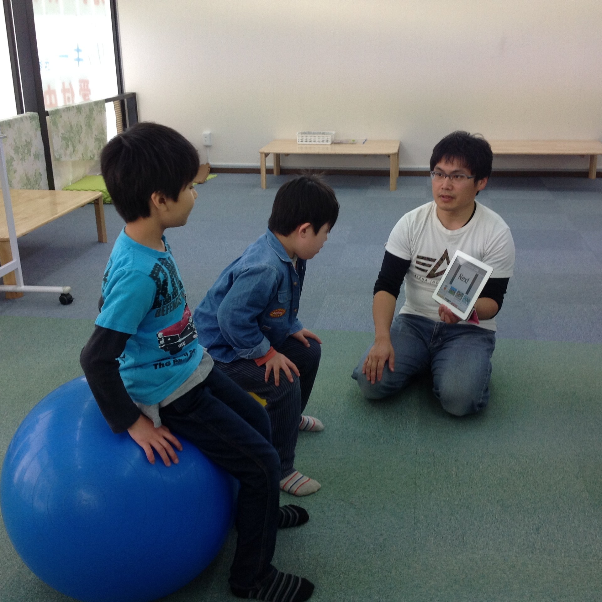 ABCの曲に合わせバランスボールでリズムに乗って