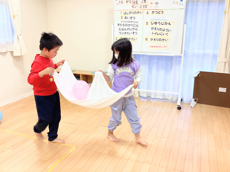 同じチームのお友達と協力しながら、楽しくボールリレーに取り組みました🙌❗